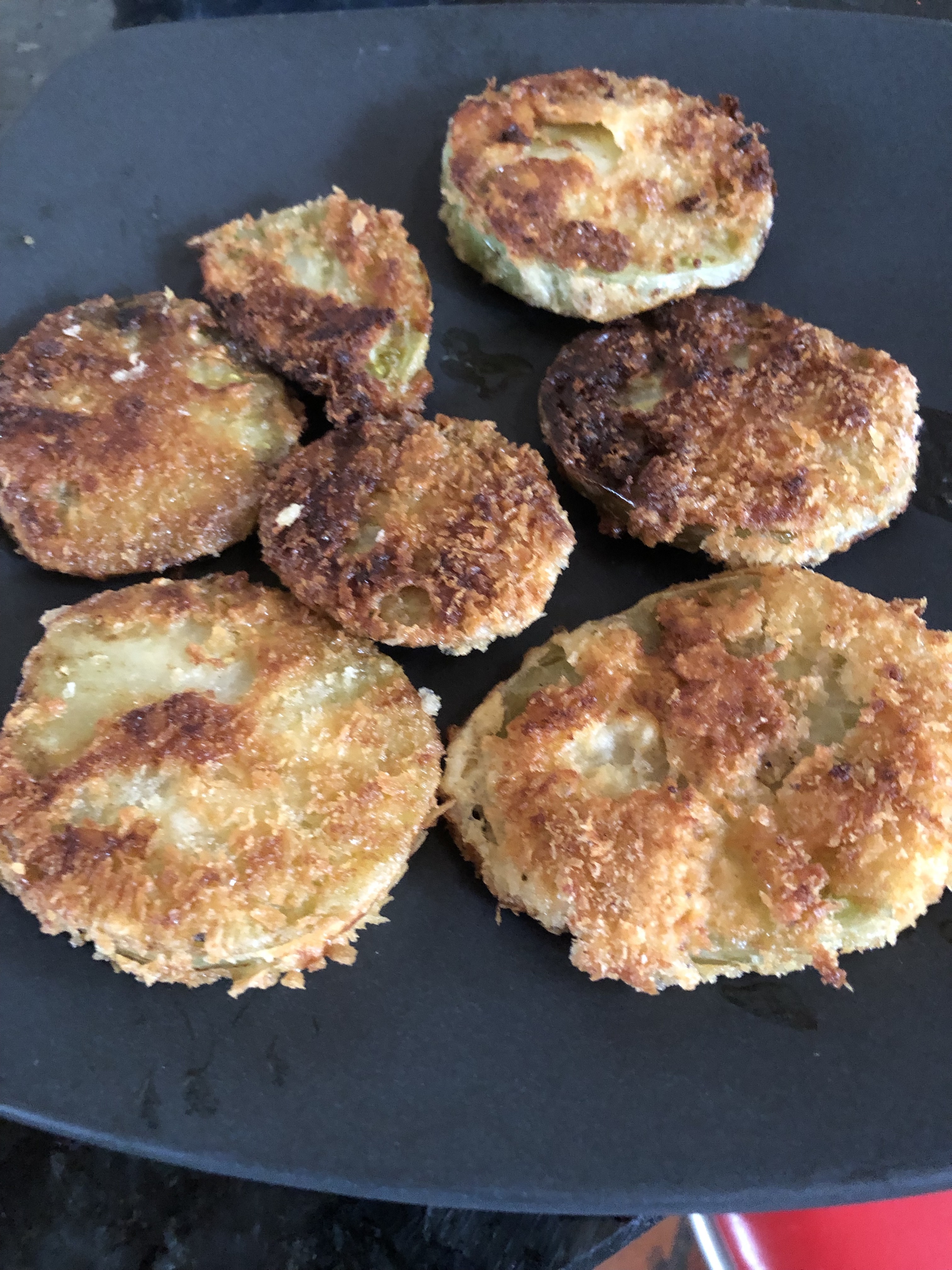 Early on, we harvested a lot of green tomatoes thinking they would ripen but they never did. So, I did fried green tomatoes. I also had a lot of zucchini and had to make tons of zucchini bread . Now, we know better and to leave them to ripen on the vine. But , better than fried green tomatoes are pickled green tomato and zucchini with 2 tablespoons