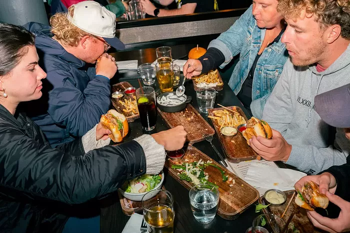 Toyose’s menu isn’t so different from what you’ll find at other soju bangs around the Bay, but the food comes out fast and it’s all solidly prepared — the stretchy, golden-brown cheese corn; the puffed-up steamed egg that tastes so juicy and savory spooned over white rice. We were especially fond of a spicy-sweet calamari stir-fry noodle dish, wherein the squid tentacle segments mirrored the thickness and bouncy chew of the accompanying udon noodles. And we were surprised by how rustic and homey the vegetable and seafood–laden doenjang (fermented soybean paste) stew was — a soothing counterpoint when everything else you’ve ordered is spicy or deep-fried.