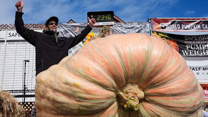 Brandon Dawson, a manufacturing engineer from Santa Rosa, California, won the 52nd World Championship Pumpkin Weigh-Off with a massive 2,346-pound gourd.