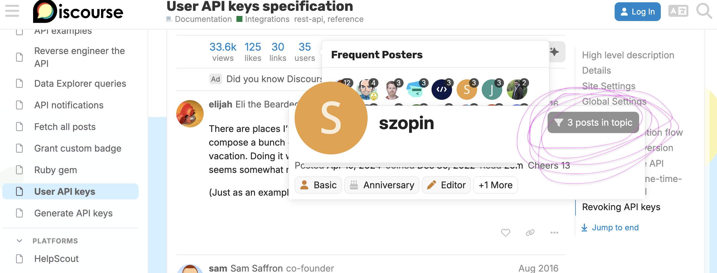 Below the OP, there is a count of views, users, etc. If I click on a user icon, it brings up a window that includes an option to filter by user. That no longer works – on desktop, it shows the screen I shared a pic of before with giant badges, on mobile there is no option to filter anymore at all.