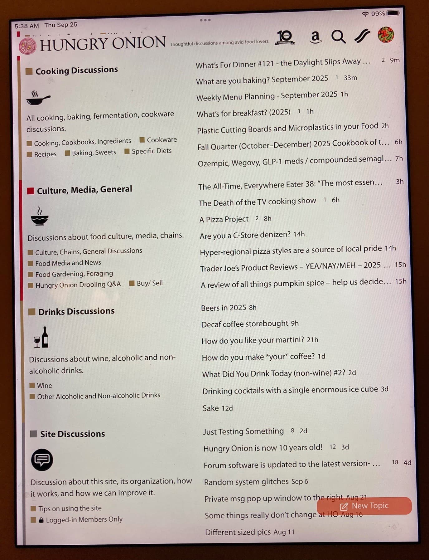 I get a lot of overlay, making it difficult to read. Also, instead of colored numbers showing me the quantity of unread posts to a particular thread, I get a tiny little black-and-white number. Knives-and-forks also do not show up in color, so I have no idea if I already “forked it”. It’s working fine on my desk top and cell phone, just the ipad (which I use quite a bit for browsing HO).