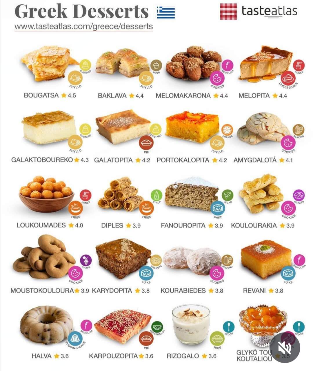 I love this, but sadly a couple favorites are missing! Maybe they are less widely known - paxemadia and nut filled cookies, which I don’t know the Greek name of. Still a cool representation of goodies.
