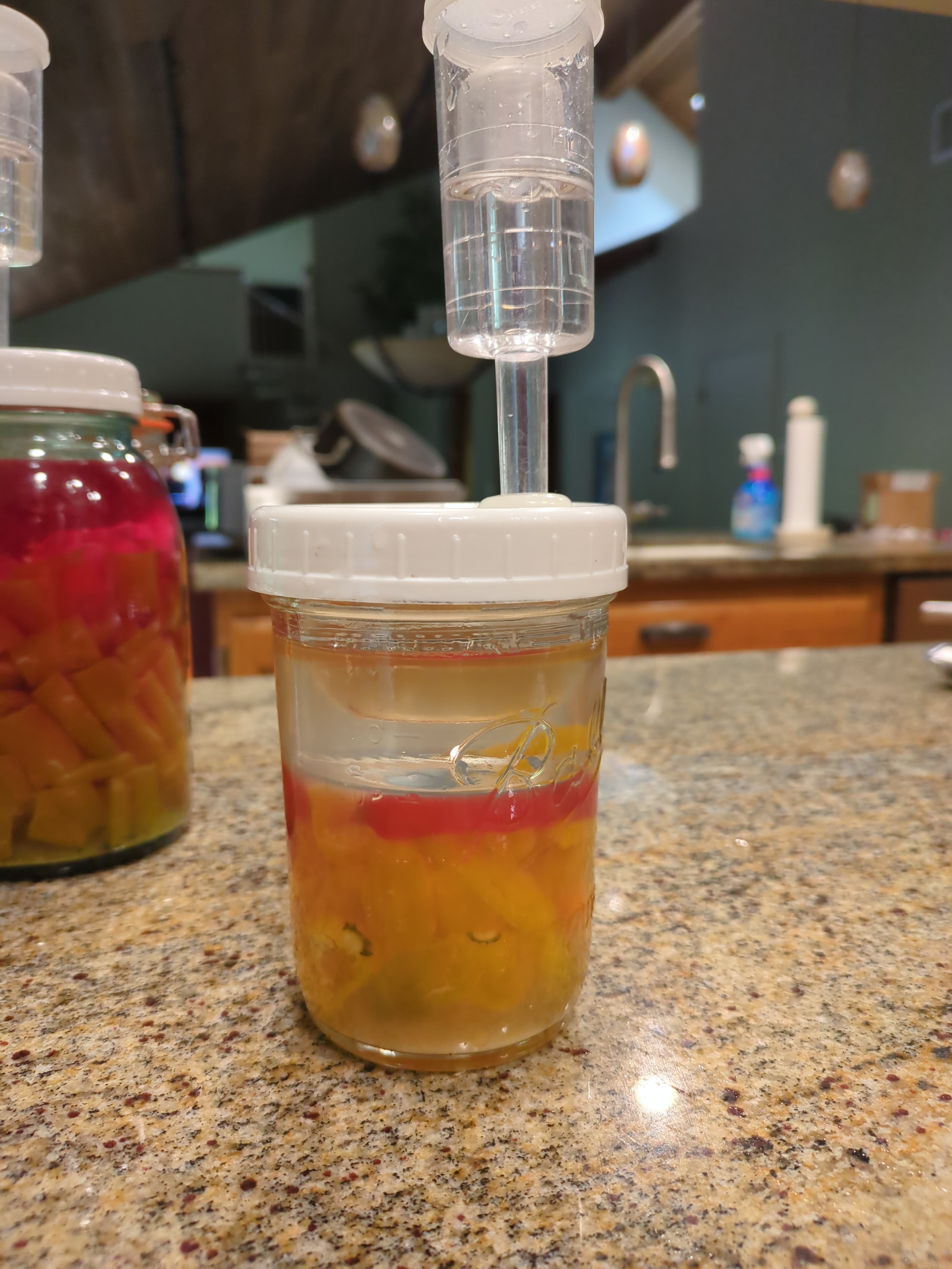 With a ferment, the only way to know how much Essig Essenz to add (or 5% vinegar) is to do a pH check, using a meter which can be calibrated. While pH papers can work, the color of peppers can make it hard to ascertain pH by comparing colors.