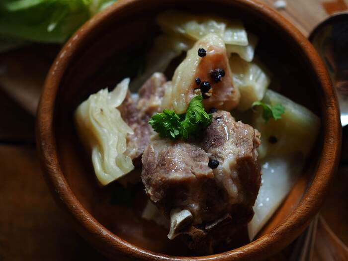 A navarin is a classic lamb stew, and there are many variations. For a tasty peasant-like dish, I make mine the way my mother used to, with an unboned lamb breast.