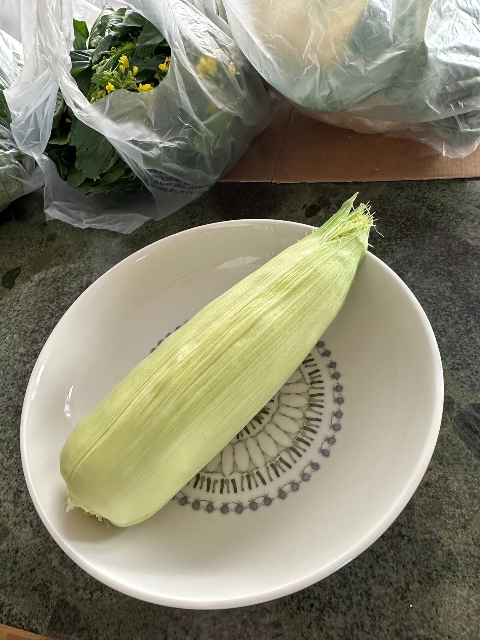 While the Wife is putting away our bouty, I nuked a cob for 1 minute and inhaled. Fresh Sweet Corn, one of the finest things I’ve eaten in recent memory.