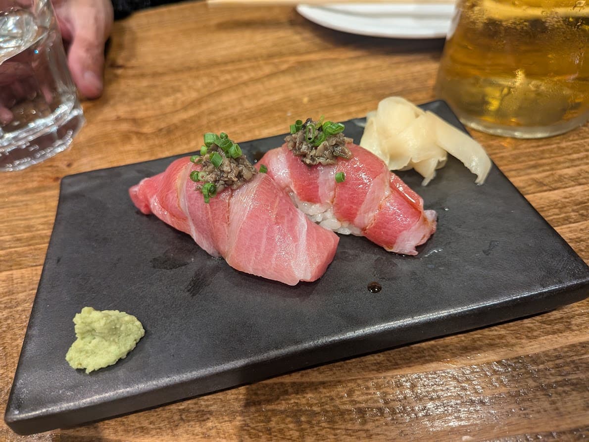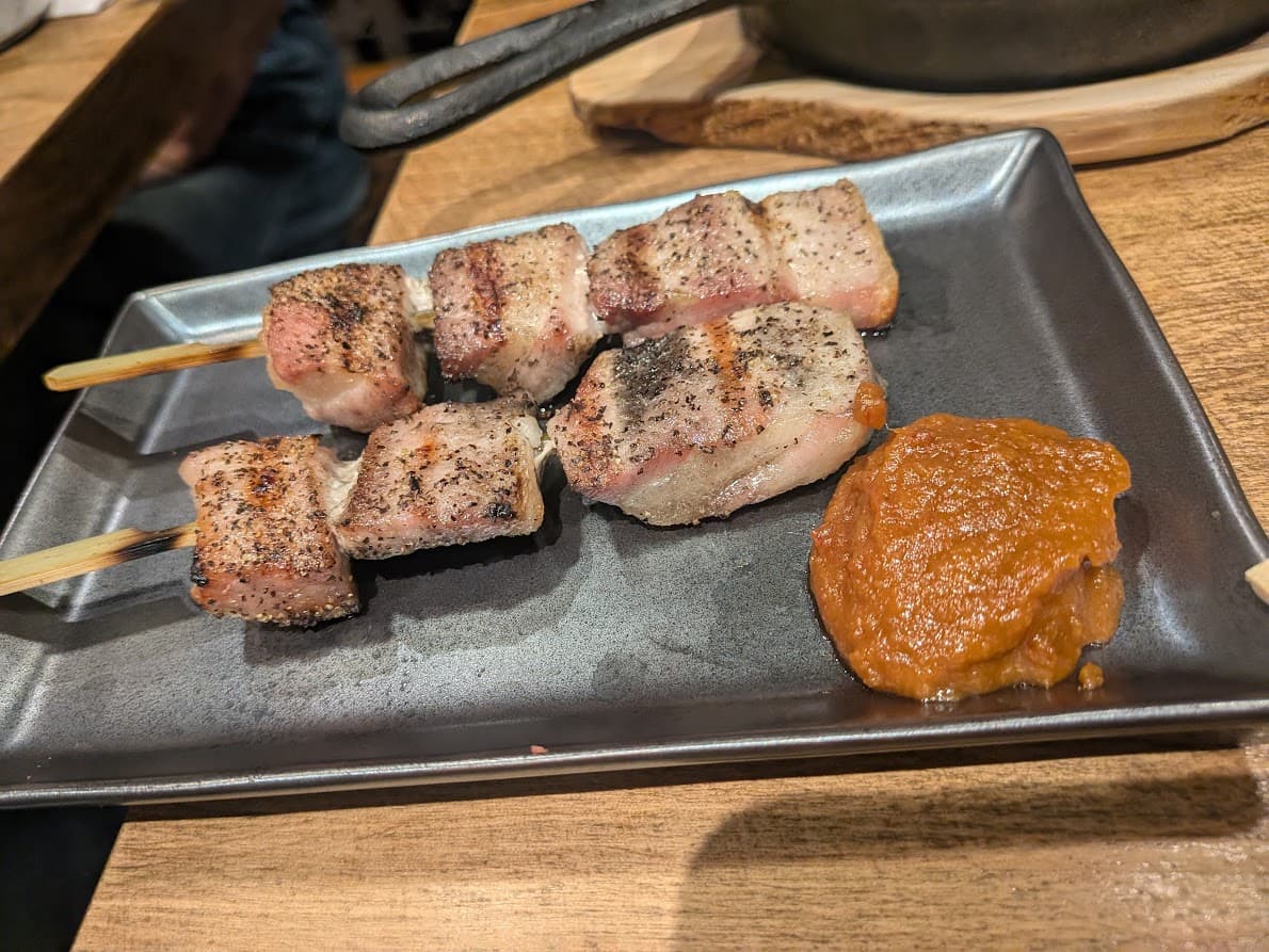 Grilled Unagi skewer special. Served with Sansho powder. The Sansho they use is very high quality. Almost all the sansho I have purchased in the states has been meh. This dish reminded me how much high quality sansho can elevate a dish. The sweetness of the eel was elevated by the numbing Sansho. Out of this world.