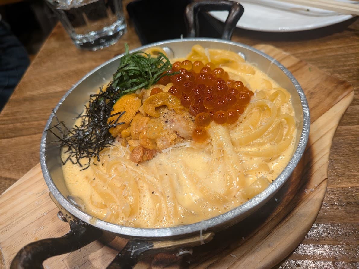 Spoons of uni, salmon roe over creamy Yuba skin. A dish that would fit in perfectly at a Michelin Stared restaurant. Easily the best bite in the Bay Area.