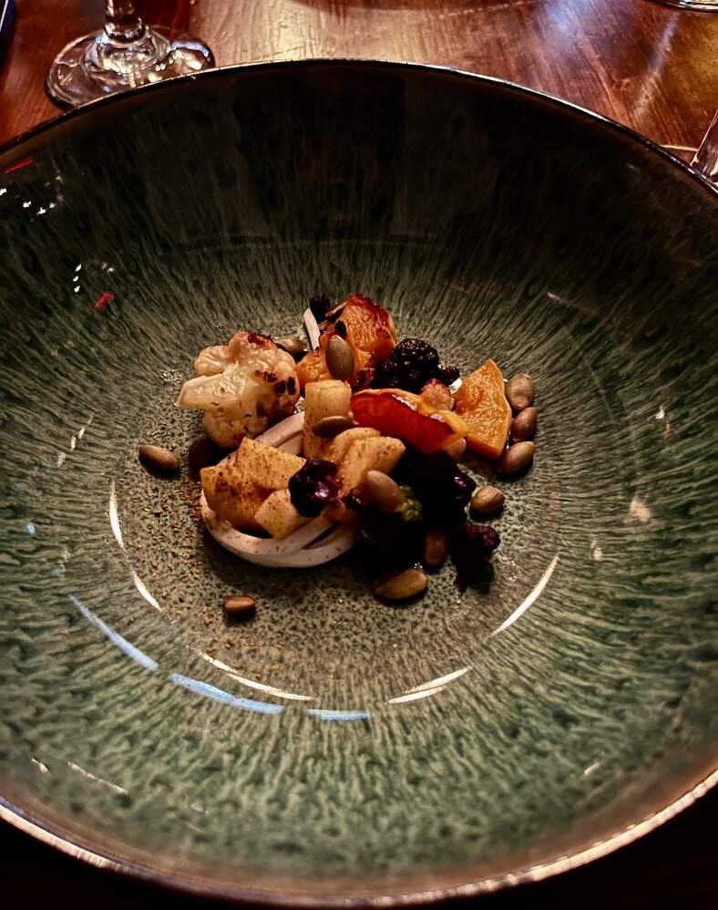 I forgot to take a pic of the intermezzo, which was a habanero sorbet topped with a jalapeño. Both completely devoid of heat, but on purpose. I love the floral fruitiness of habaneros, but would’ve preferred just a hint of heat.