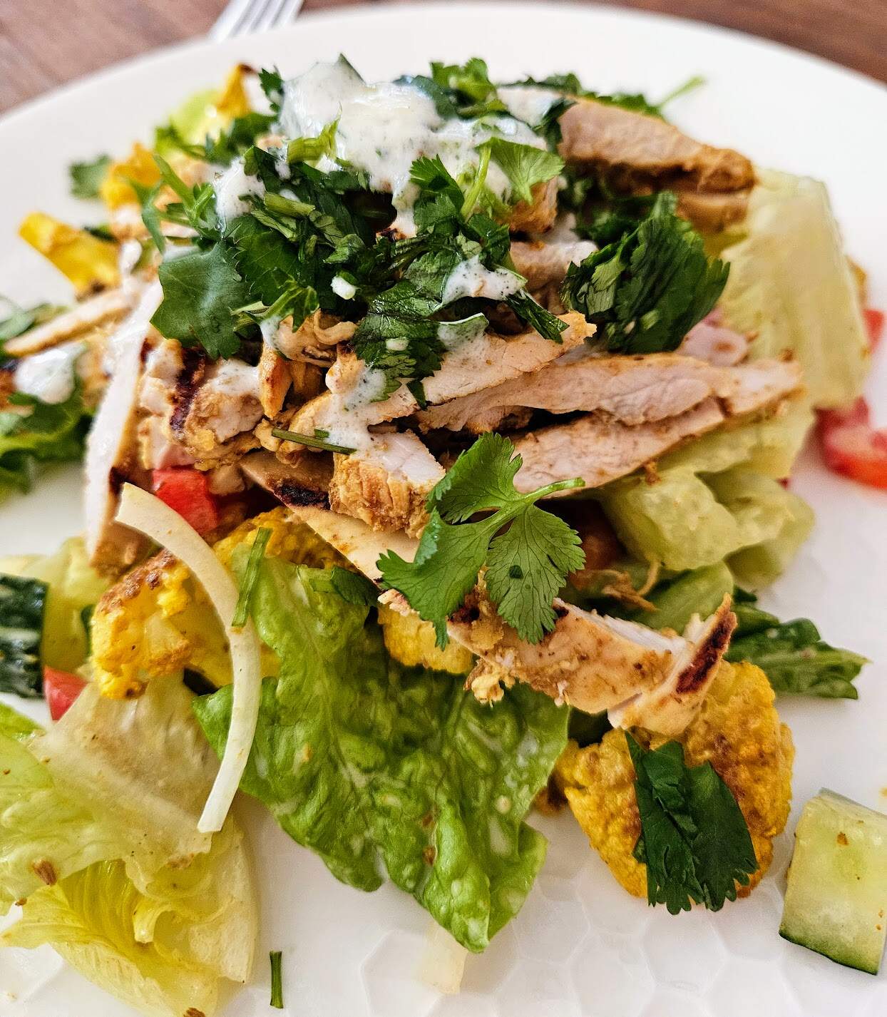 Still working through “The Build Your Bowl Salad Cookbook”. Today was tandoori chicken and spiced cauliflower bowl.