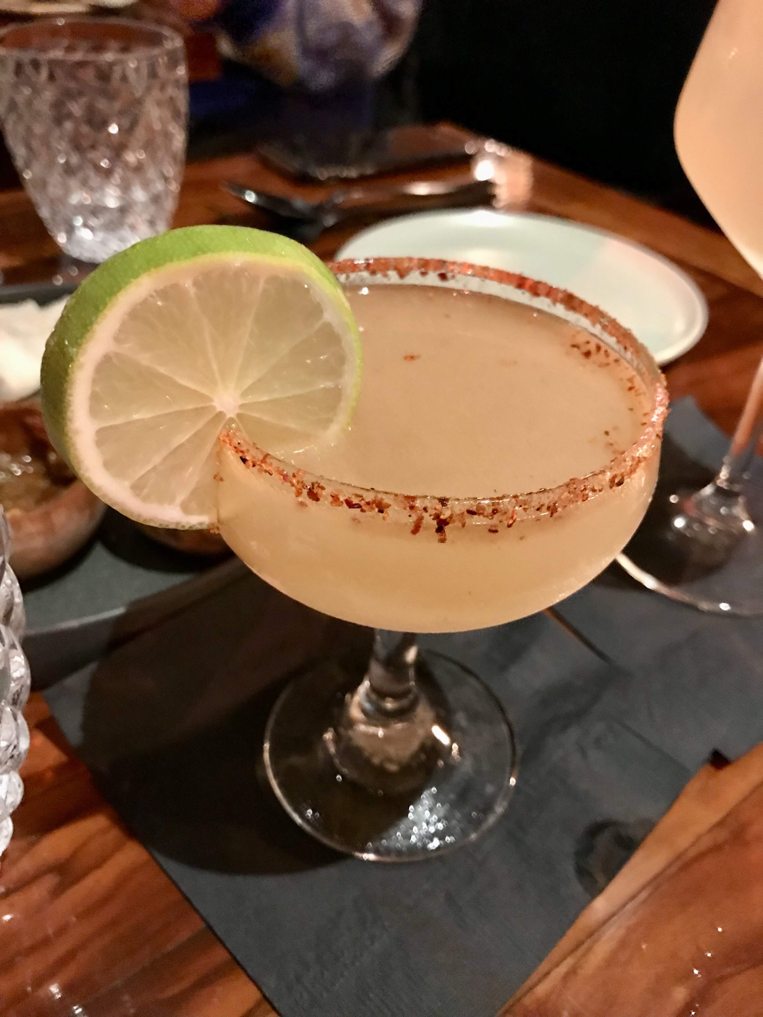 Sambal Margarita (tequila, lime, Ferrand Dry Curaçao, agave syrup, sambal) was quite enjoyable, with a decent amount of kick.