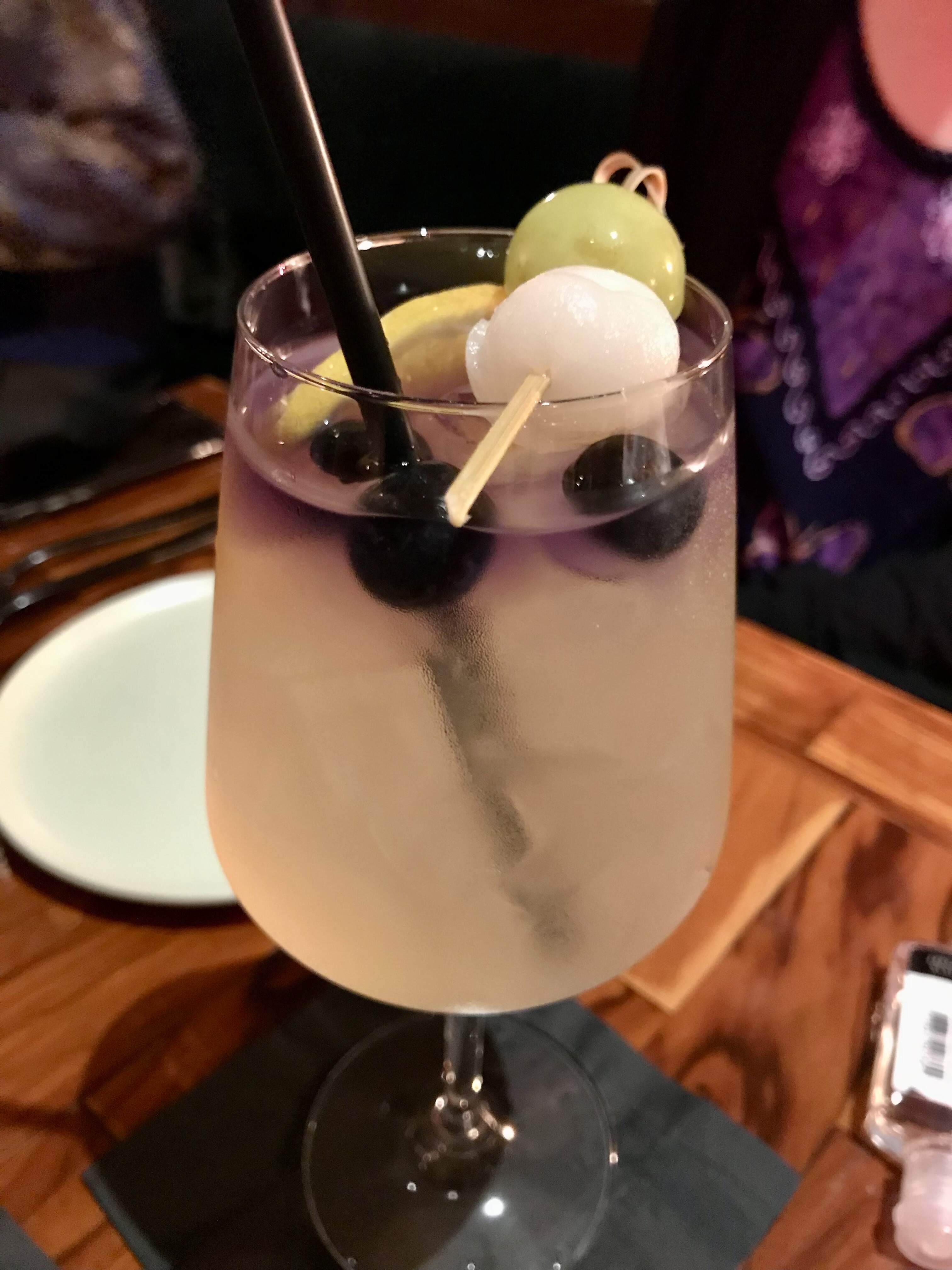 Bali Sangria (white wine, elderflower, lychee juice, coconut water, limoncello, VSOP, Curaçao, blueberries, lychee, grape) was pleasant, but less distinctive.