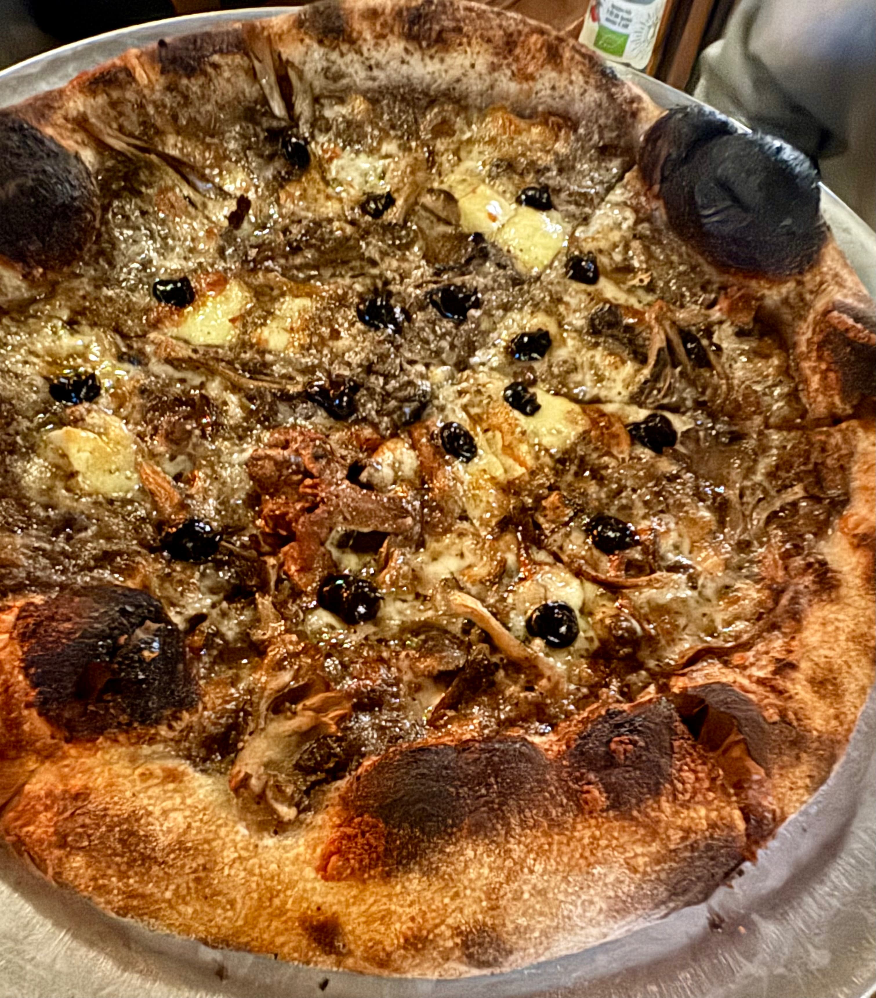 Jules Pizza, Lower Haight, SF. Right around the corner from Toronado if you have to wait for a table. I really like their crust, crispy and airy. Looks more charred than it tastes. Some interesting combinations. The caesar salad was very good with avocado (unnecessary) and pickled string beans.