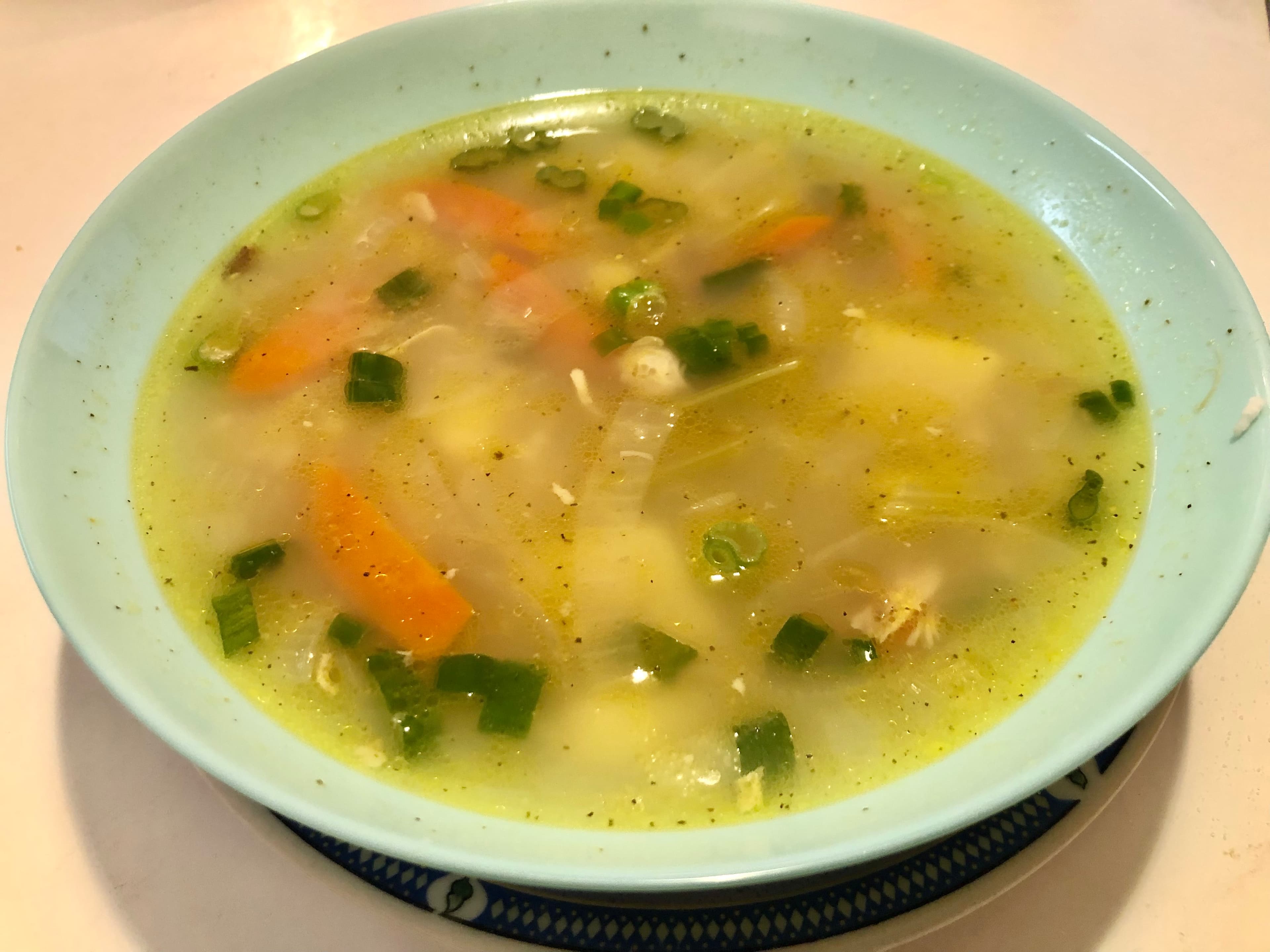 Actually I did make soup today, being a bit under the weather and mild stomach ache. Didn’t want to eat anything heavy. Nothing special, chicken soup made from homemade roto chicken stock, some Better Than Bouillon chicken concentrate, onion, celery, carrot, potato, left over rice, olive oil, ghee and finished with green onions, pepper and lemon juice. It’s probably breakfast tomorrow.