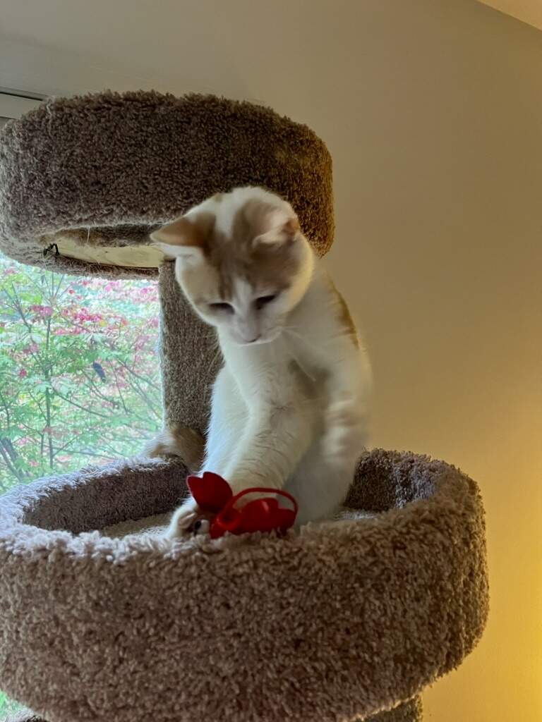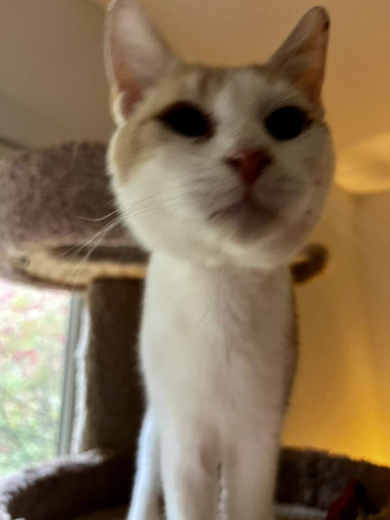 Years ago I was browsing at the SPCA and had my eye on a gorgeous Himalayan kitten … others wanted her too so there was going to be an auction. While I waited for this, I continued walking around. As I passed one cage, a teen Siamese (probably mixed) reached her arm all the way out and snagged me. That was it. We had a lot of nice years together.