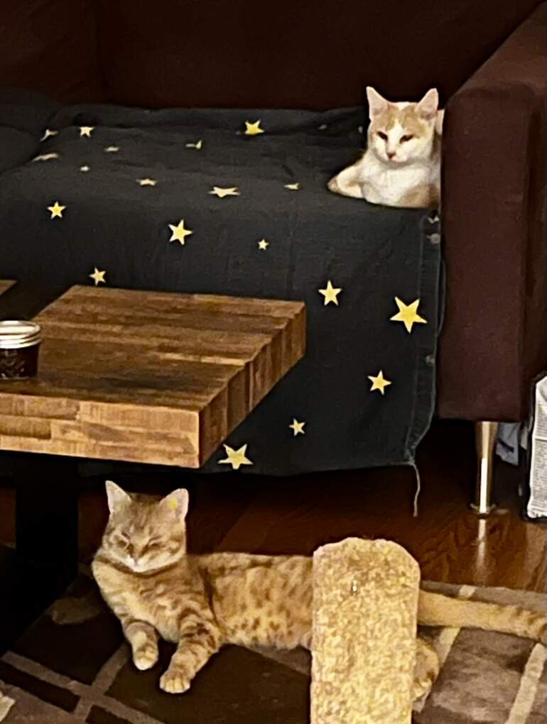 We’re not too salty about it, as that’s where their litter boxes are, and they’ve both proven themselves to be housebroken