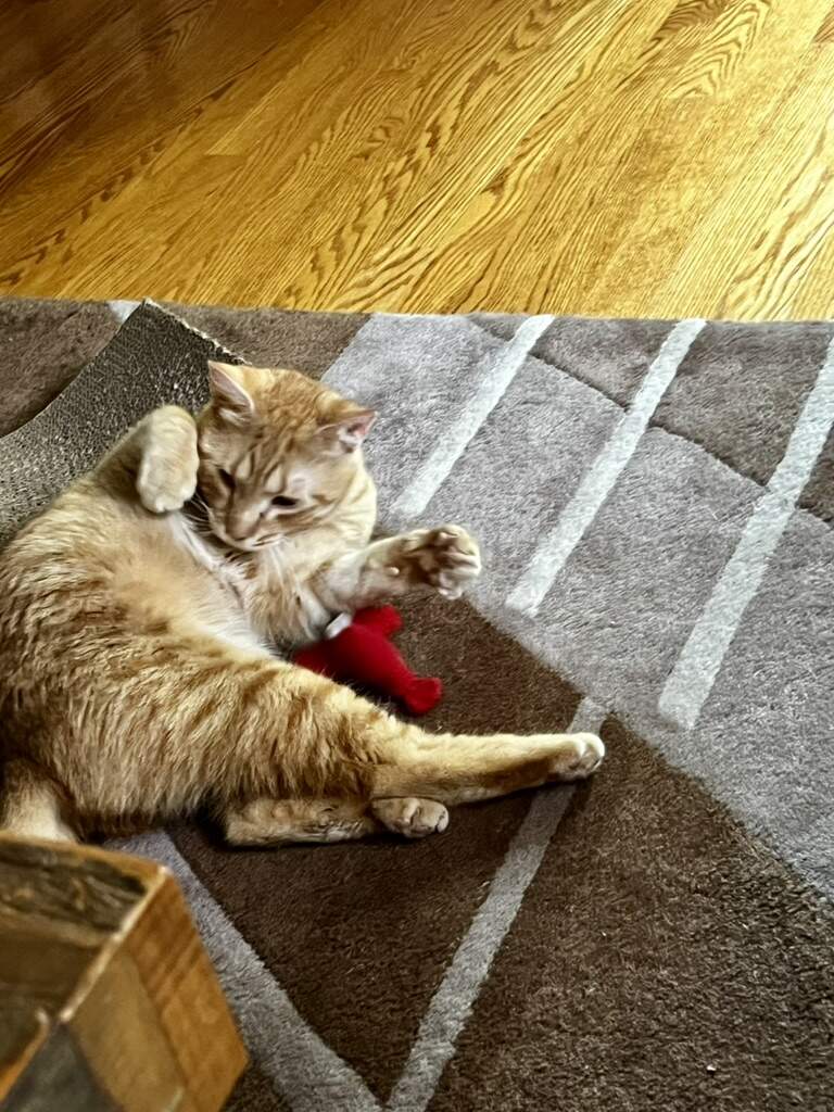 I was thinking about the pocket door at casa lingua. Our 16 yo 16+# black cat taught the grandcat how to rattle the pocket door on one of our bathrooms. Also how to rattle the bathroom cabinet doors and a few kitchen ones, too. Anything for a cat laugh. Same with roaming the house at night yowling.