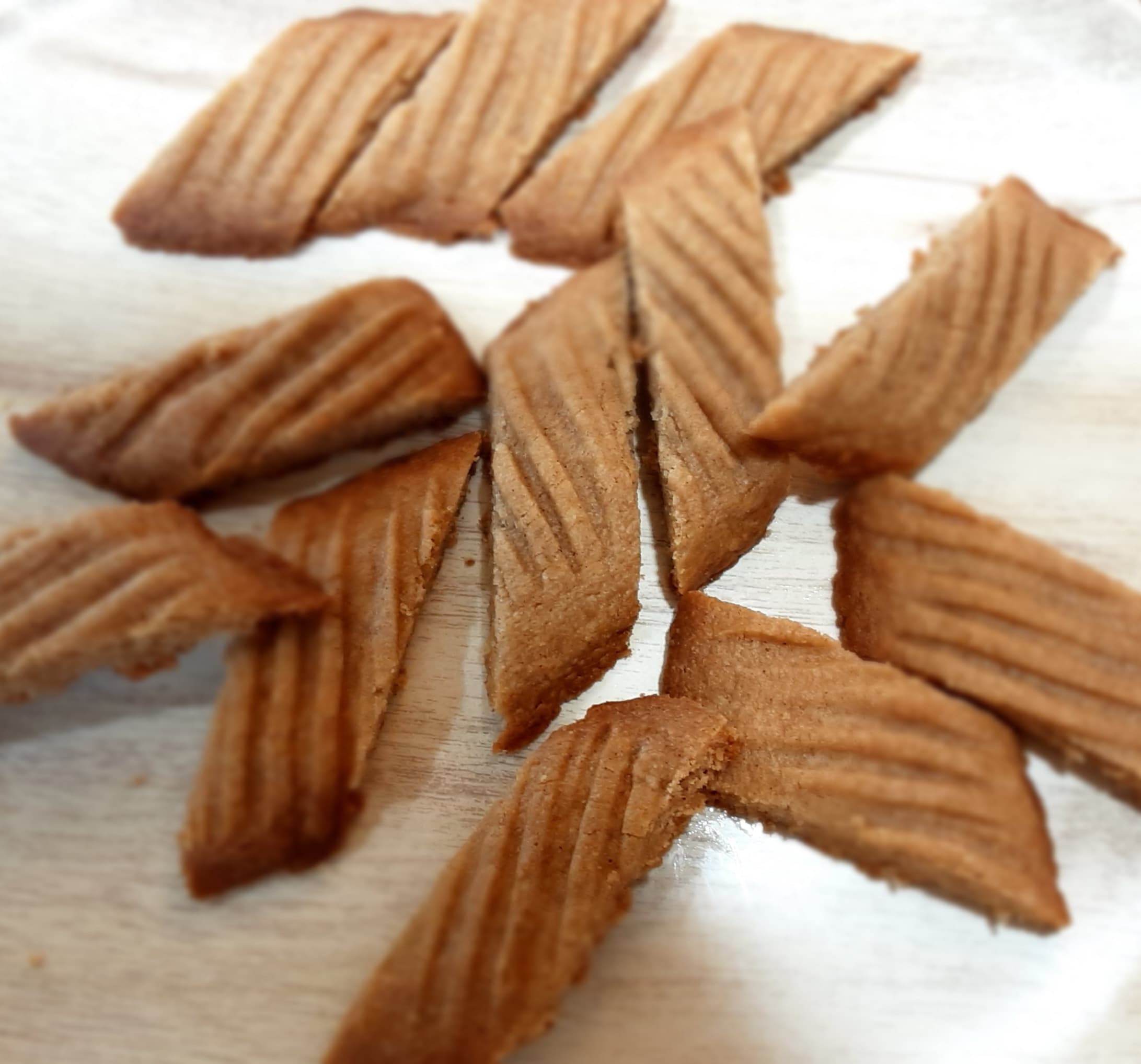 (I don’t believe they had any semolina in them, it was added in later versions because it can act as a binder and makes the biscuit less prone to fall apart. The version my great grandmother baked at home in a sand “oven” was apparently made of ghee and sugar, creamed by the palm of her hand until fluffy, plus maida / refined flour, and cardamom for flavor, that’s all.)
