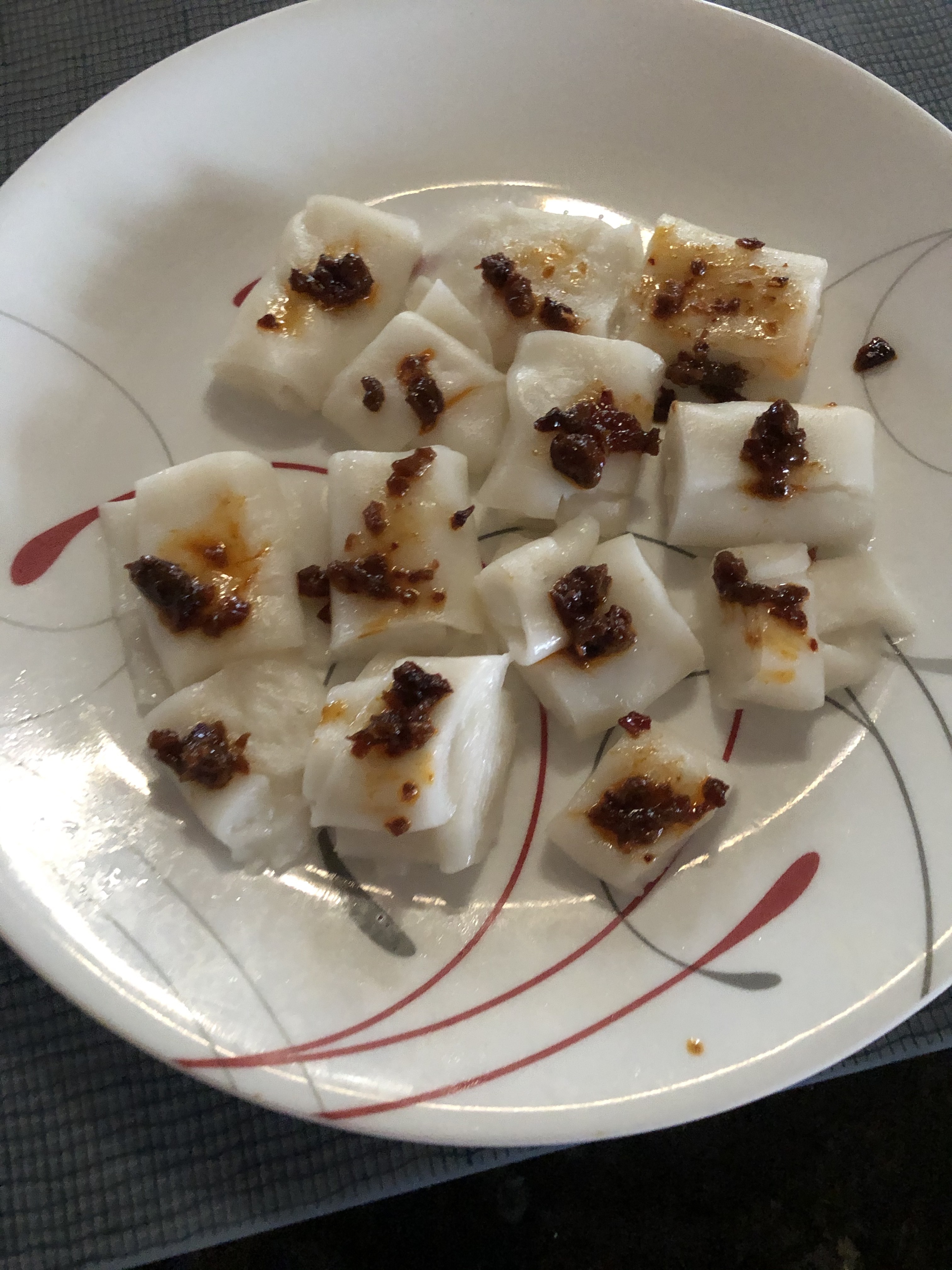 Here are 2 pictures of the soft rice dim sum I purchased recently. It cost $1.79 / pack. They are soft and ready to eat as is. I cut mine into smaller serving piece, added sauce ( Kikkoman ponzu citrus dressing + XO + chili crisp ) as shown . Sometimes, I cook meat and. vegetable separately similar to preparing Jap Chae and add this in