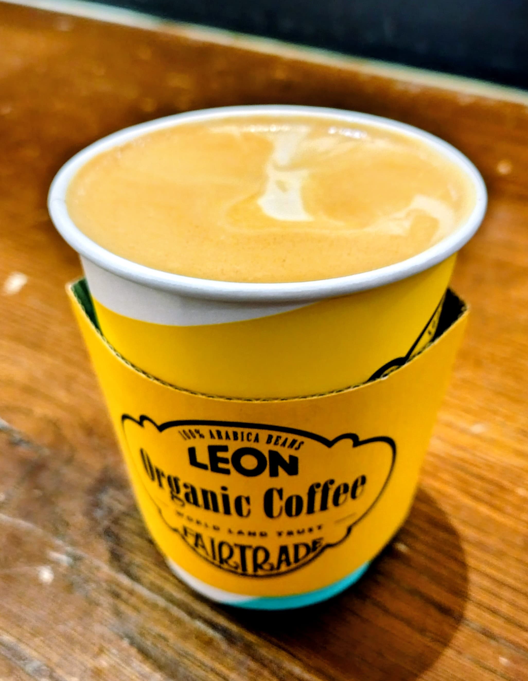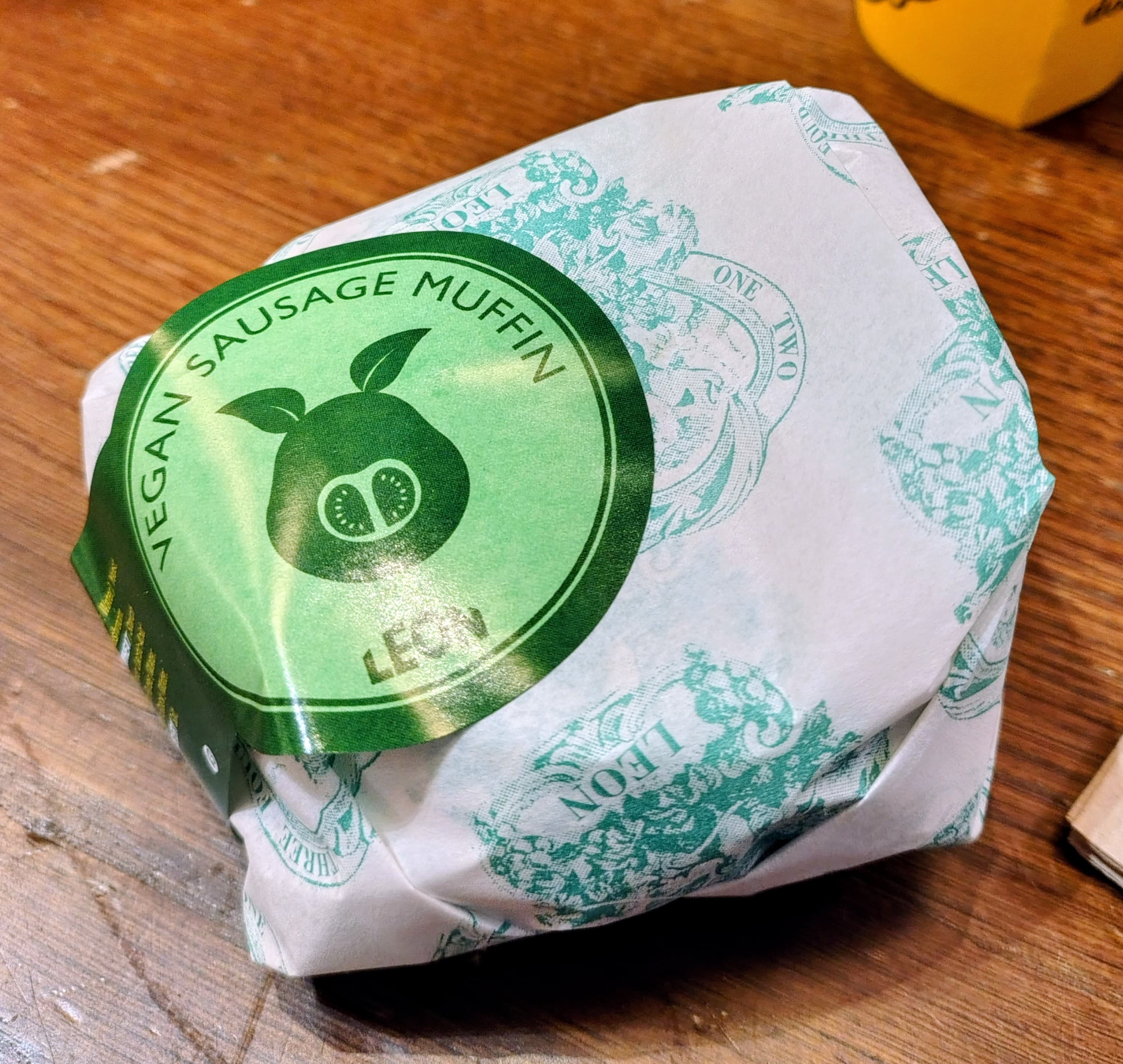 Mildly depressing airport breakfast at Heathrow. From the chain restaurant Leon. Flat white from an automated bean to cup machine cost more than a barista-made drink outside an airport. It was meh. Vegan sausage muffin was ok but the bread was terrible, white doughy bleh. On my way to Hanoi on 3 separate flights ![]()