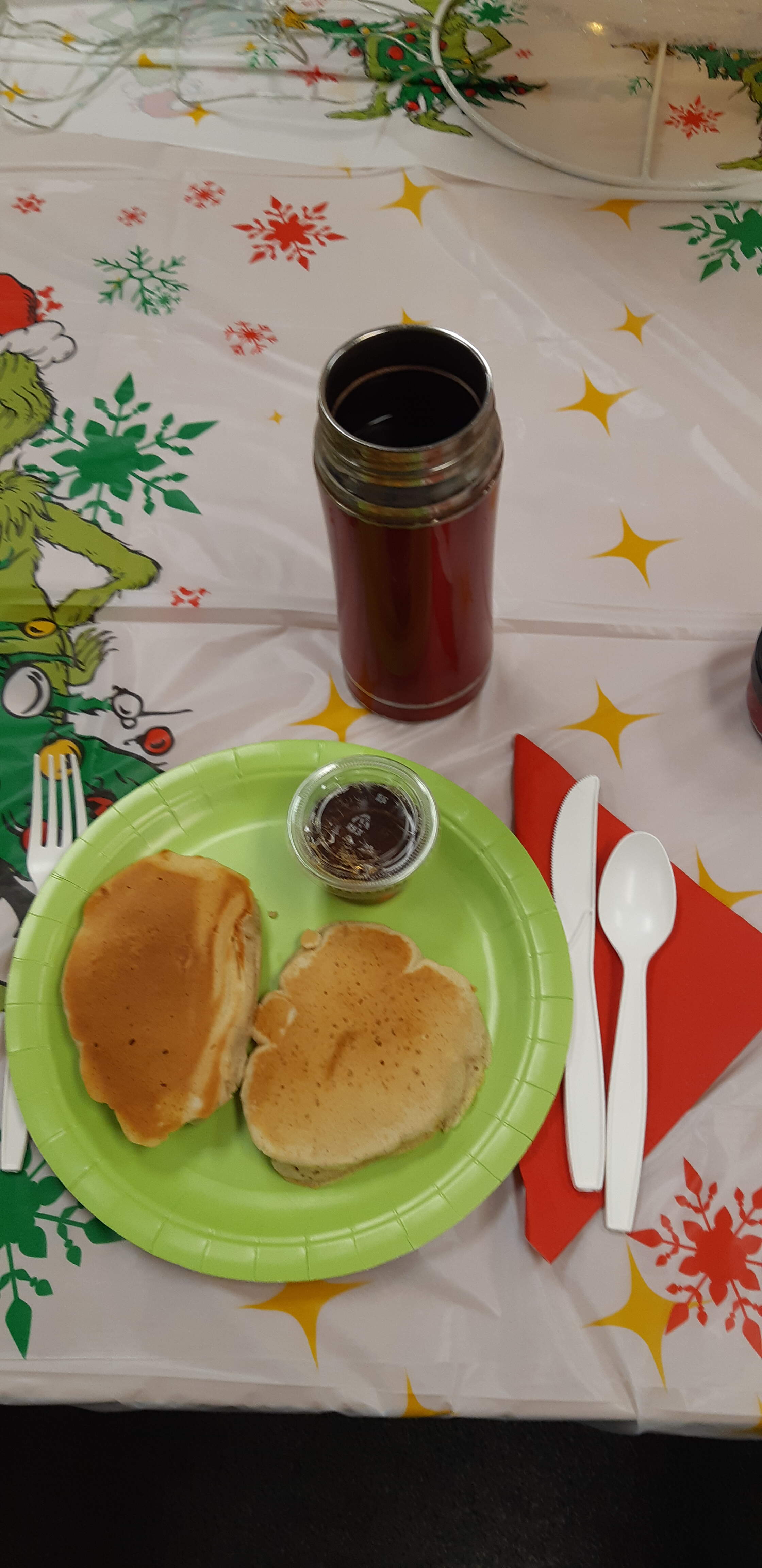 The management team at the office made the staff a pancake breakfast this morning! It’s an early Christmas celebration. Pictured are the pancakes I had for breakfast then cheese and chocolate that I had for dessert. There were also croissants, palmiers and Timbits which I didn’t have since I was too full. I have now had so much sugar I am now bouncing off the walls…