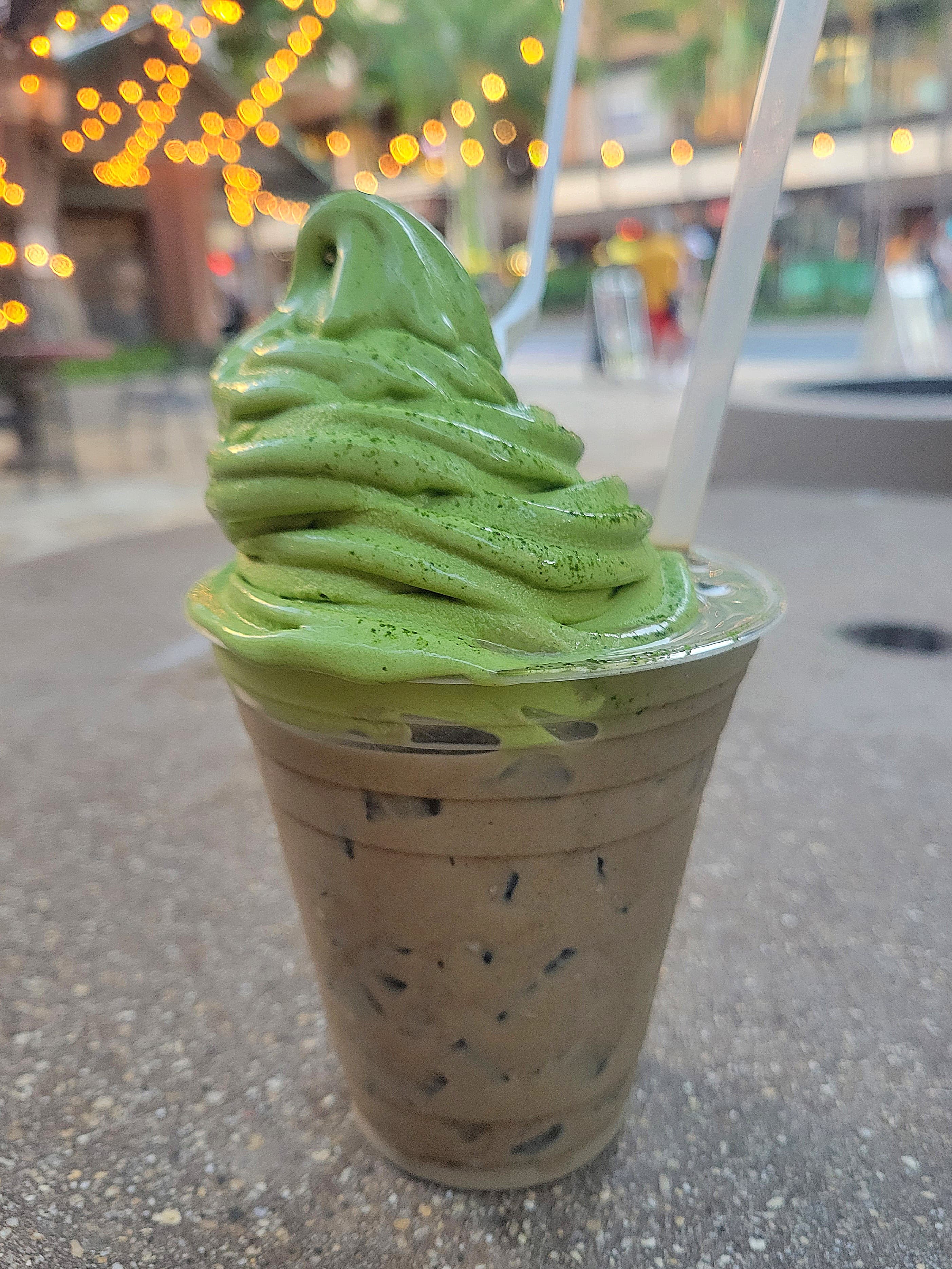 Hojicha latte float with matcha ice cream from MATCHA Stand MAIKO in Honolulu, HI. I got this on my walk to get some groceries last night. The hojicha was nutty and toasty with a small note of pipe tobacco. The ice cream was more matcha-forward and less sweet than other matcha ice creams I’ve had. I really enjoyed this so I will probably go back and try something else soon.