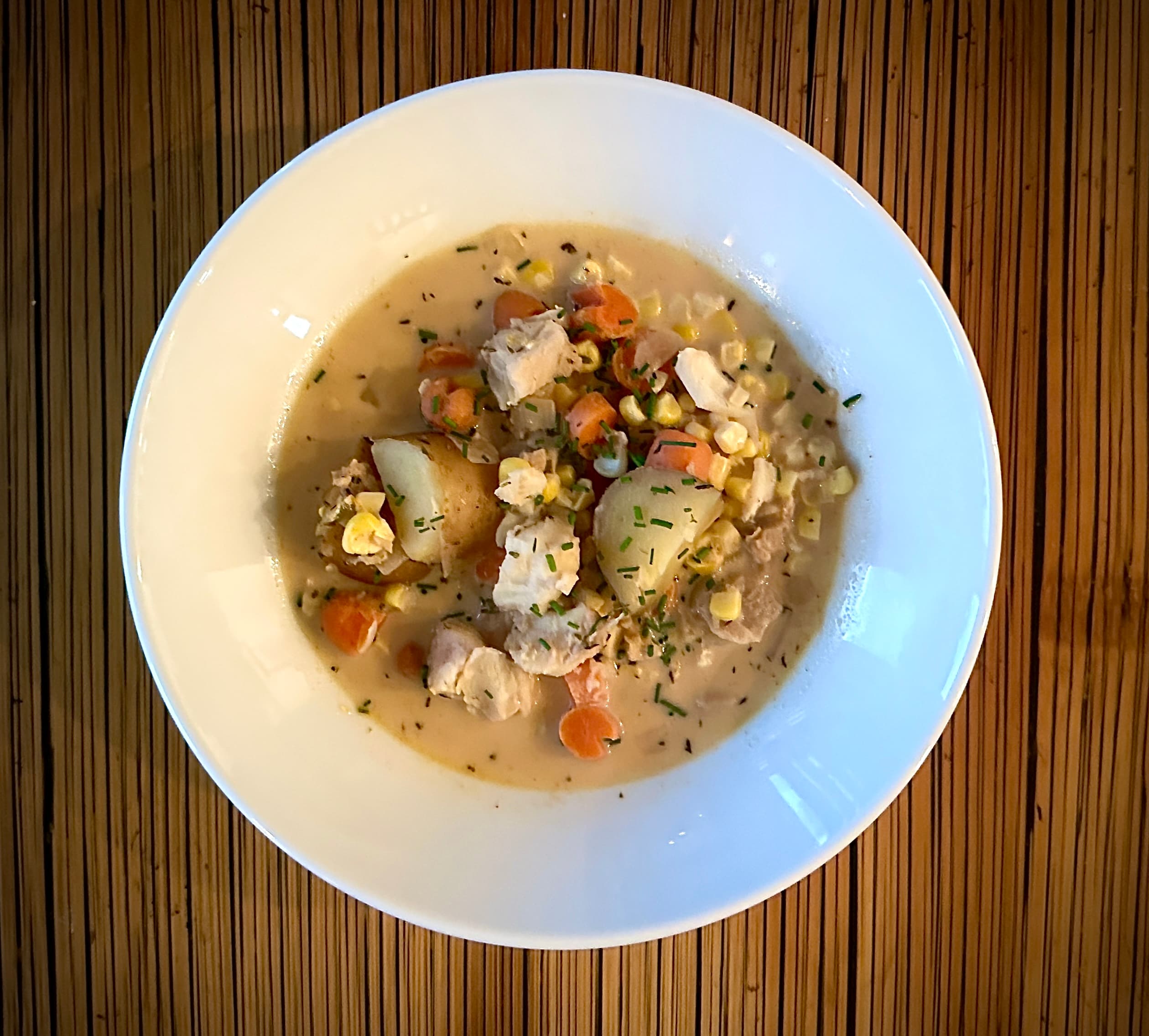 After two days of 20 mph winds with gusts upwards of 50 mph, all I could think of was soup. Luckily, Mr Bean caught lovey tog on Friday that hadn’t gotten prepped for freezing. Corn and fish chowder, with CSA corn (the cobs helped flavor the broth ala @LindaWhit), chopped clams, potatoes, onions, carrots, garlic, ,bay leaf, thyme, smoked paprika, milk and heavy cream. Hit the spot.