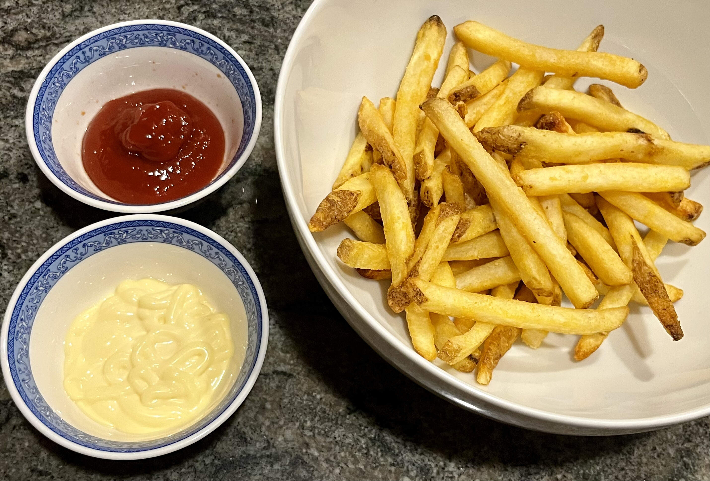 L&W fries from the air-fryer with Heinz & Kewpie.