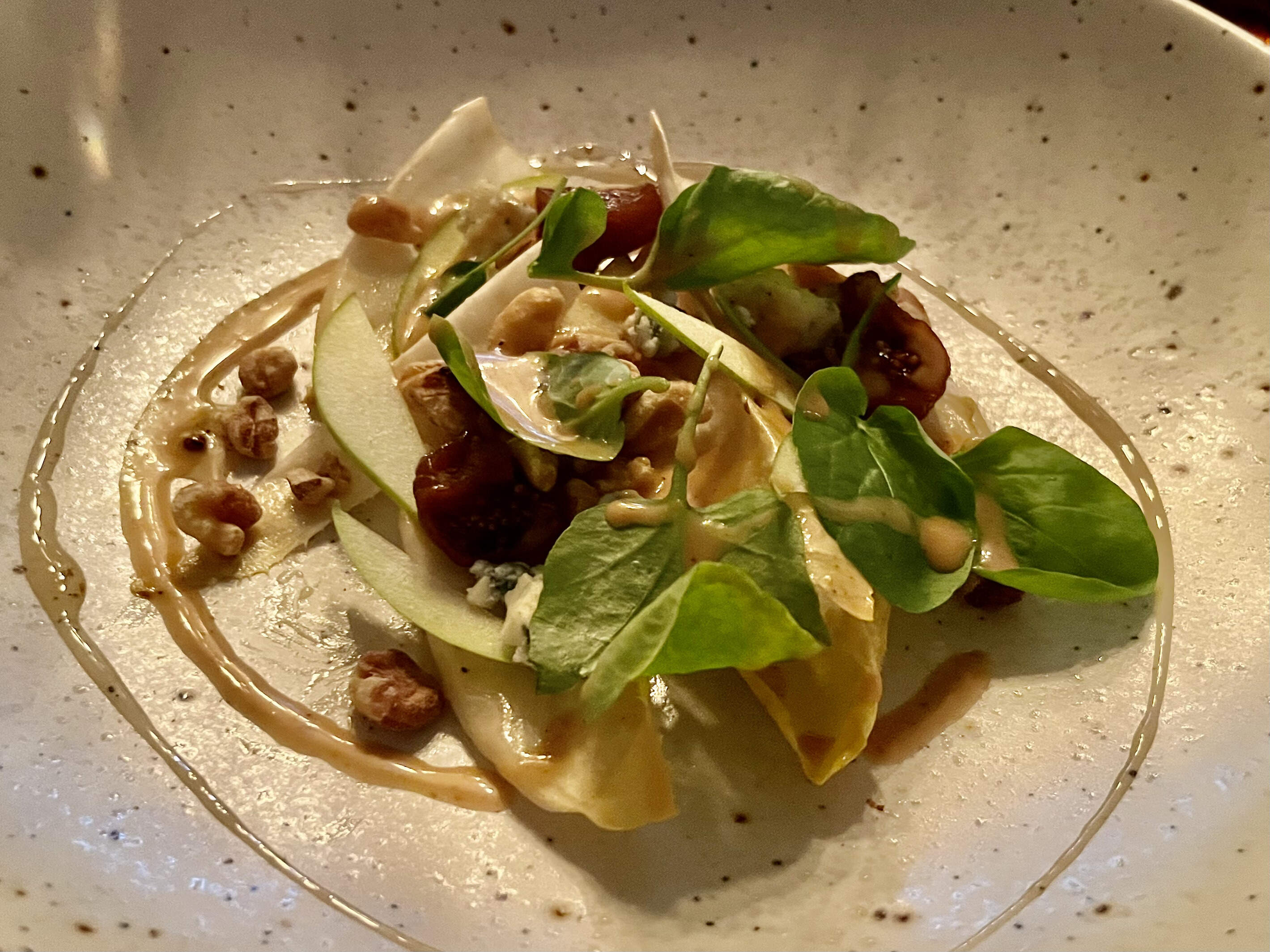 Next up, endive & apple salad with cider vinaigrette, smoked blue cheese (fantastic), toasted