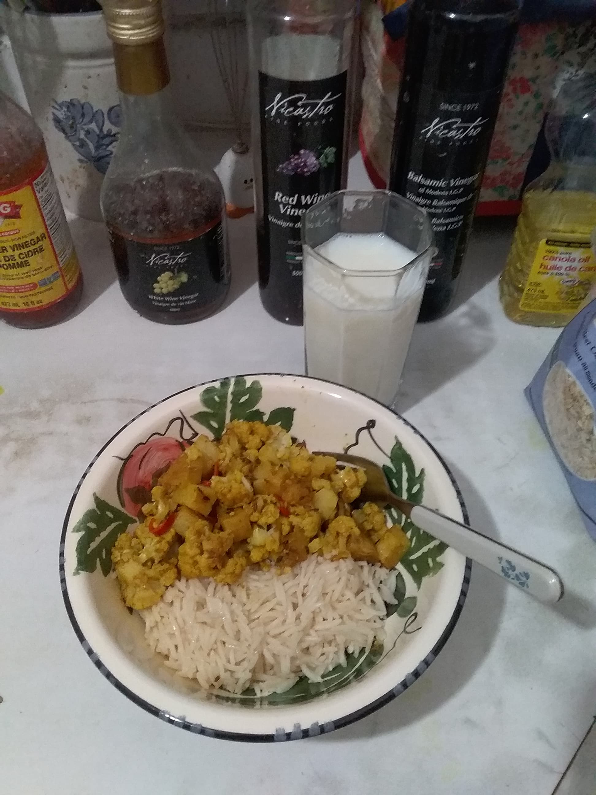 Tonight’s dinner was aloo gobi with rice. Better pairing than acorn squash
