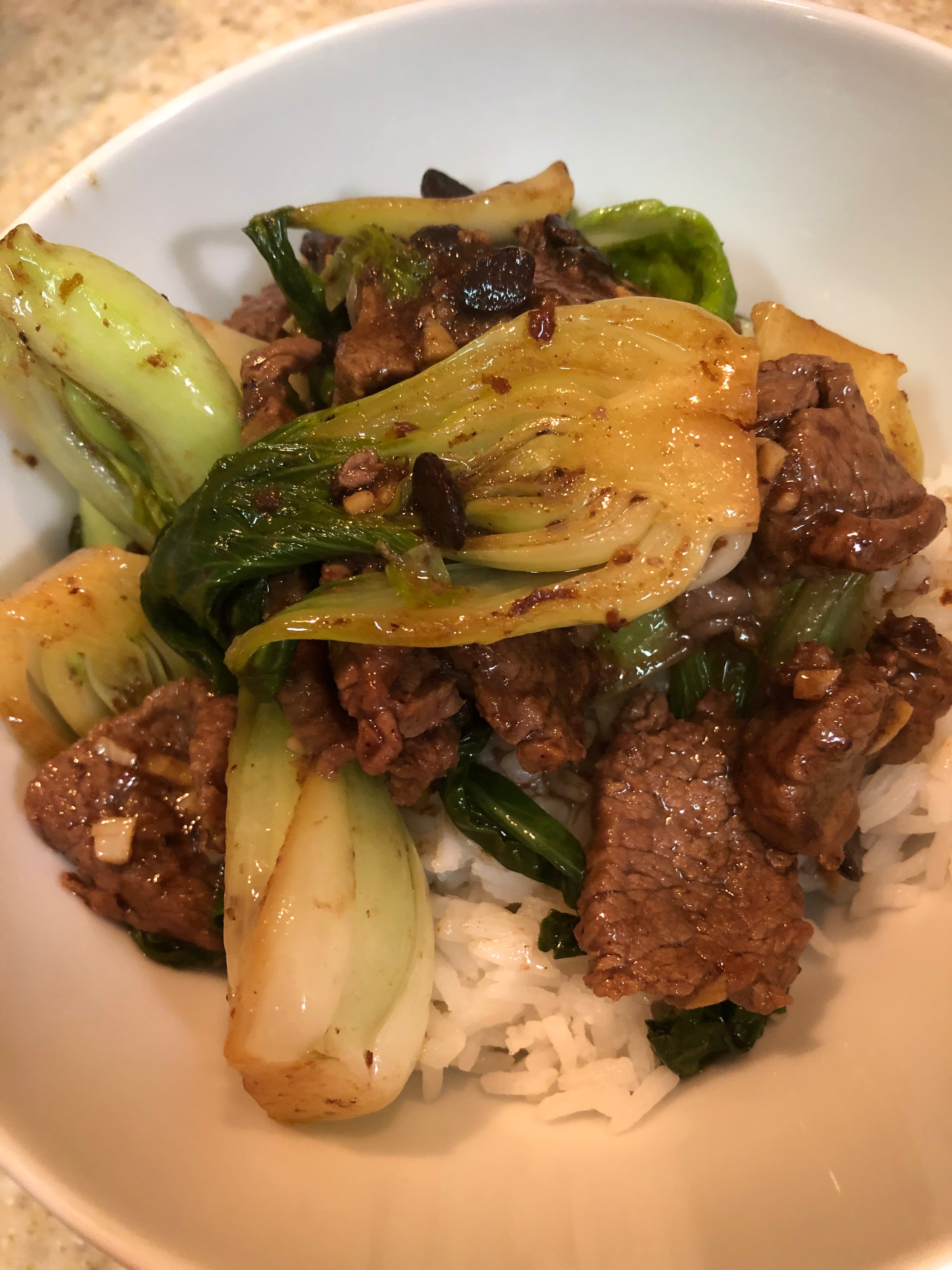 Stir-fried beef and baby bok choy with fermented black beans and TPSTOG over jasmine rice. First time I’ve tasted much of anything since last Thursday - such a relief! Leftovers for lunch tomorrow which I’m already looking forward to!