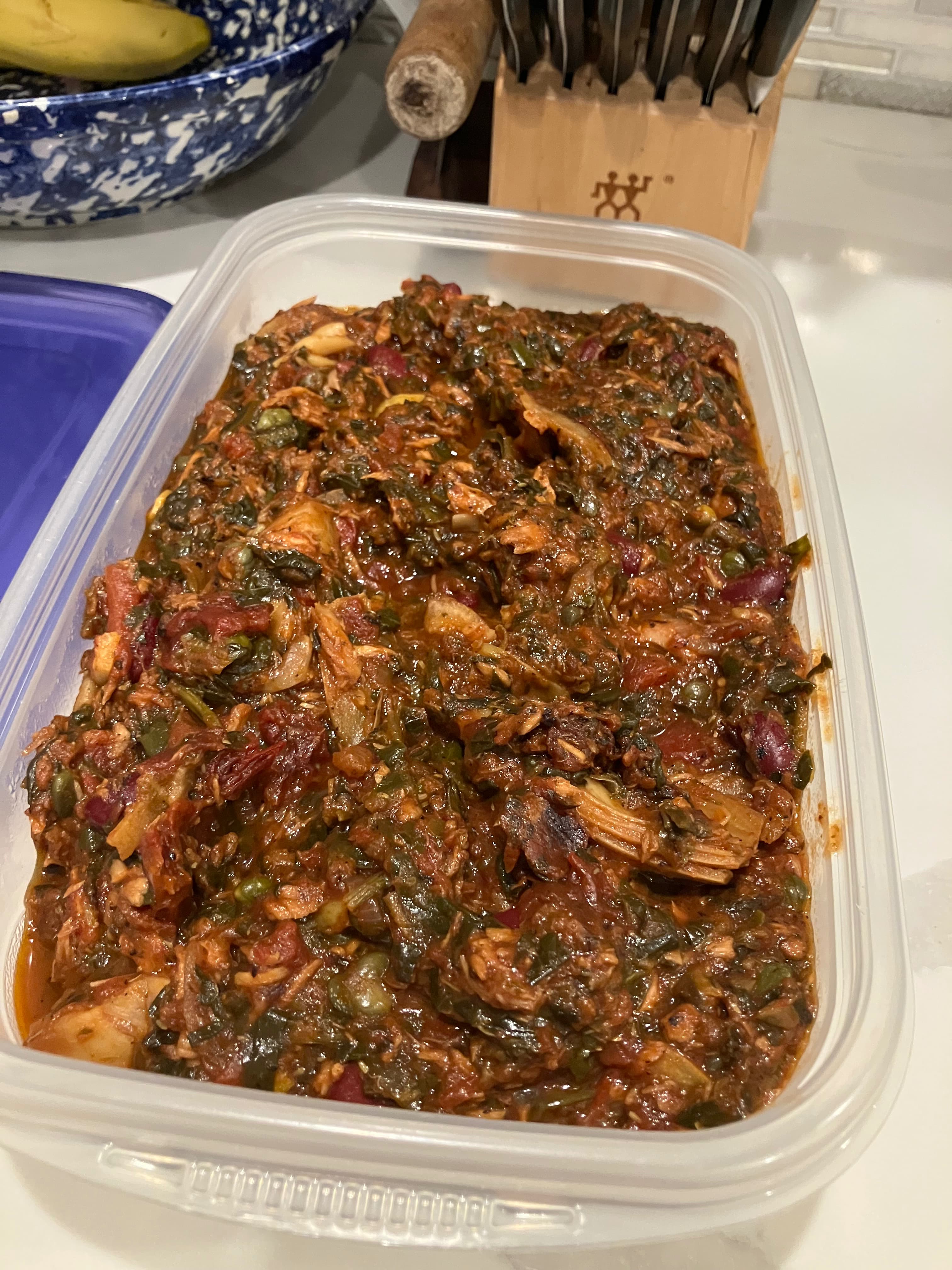 Kitchen sink tomato tuna stew. Thinly sliced onions and lemons, preserved lemon, heaps of capers, frozen artichoke hearts, spinach, crushed tomatoes, rehydrated dried tomatoes, a can of kidney beans, 4 cans of tuna in evoo, and some salt+sugar+vinegar to balance everything out. Really really good. Served over tj’s fusili but was just as good on its own.
