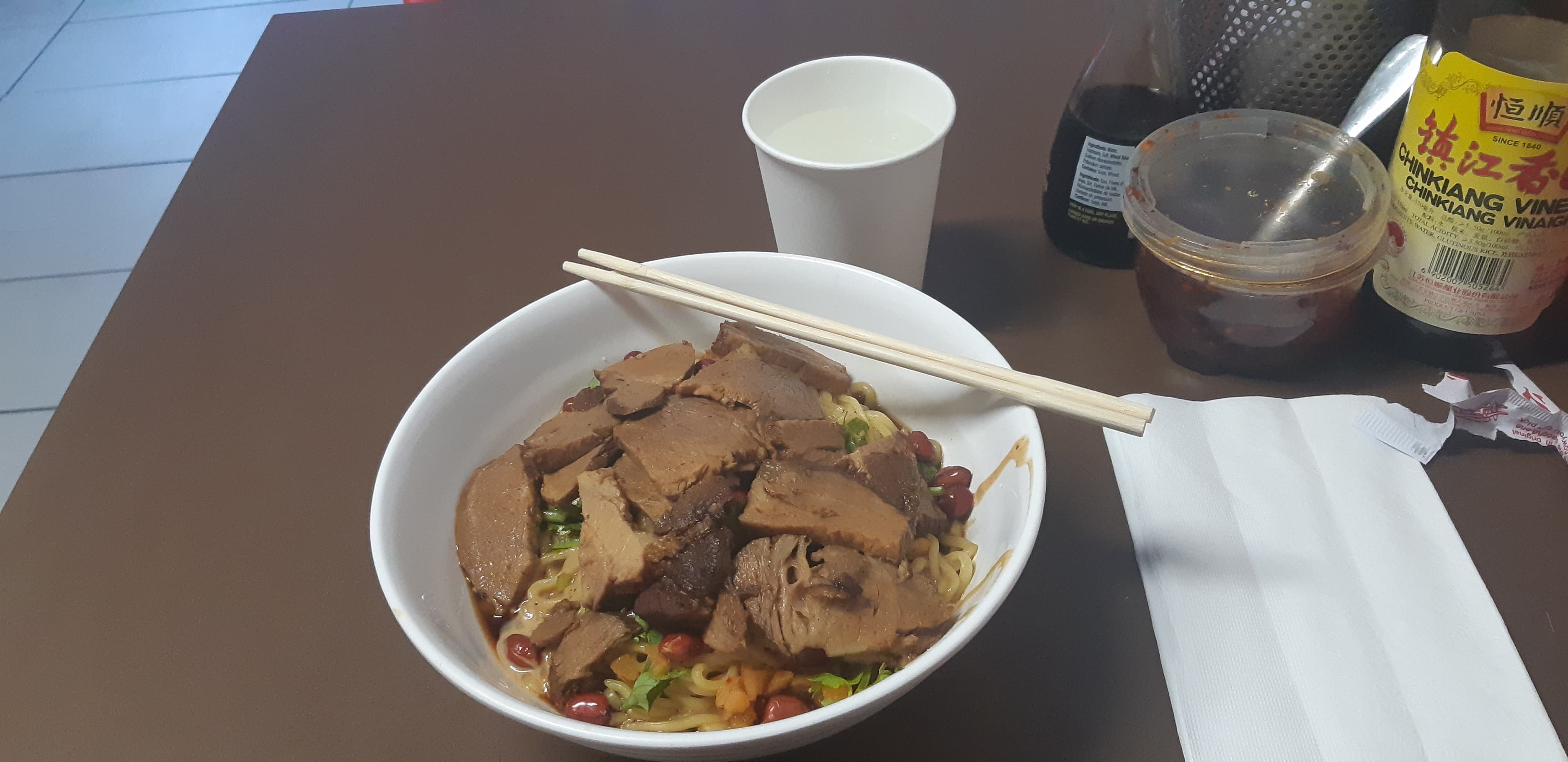 I’m off to a movie so I stopped in at my favourite Chinese restaurant on the way there. I had noodles with pork and peanuts. (For those of you from Ottawa/familiar with Ottawa I had dinner at Shanghai Wonton Noodle on my way to the Bytowne. )