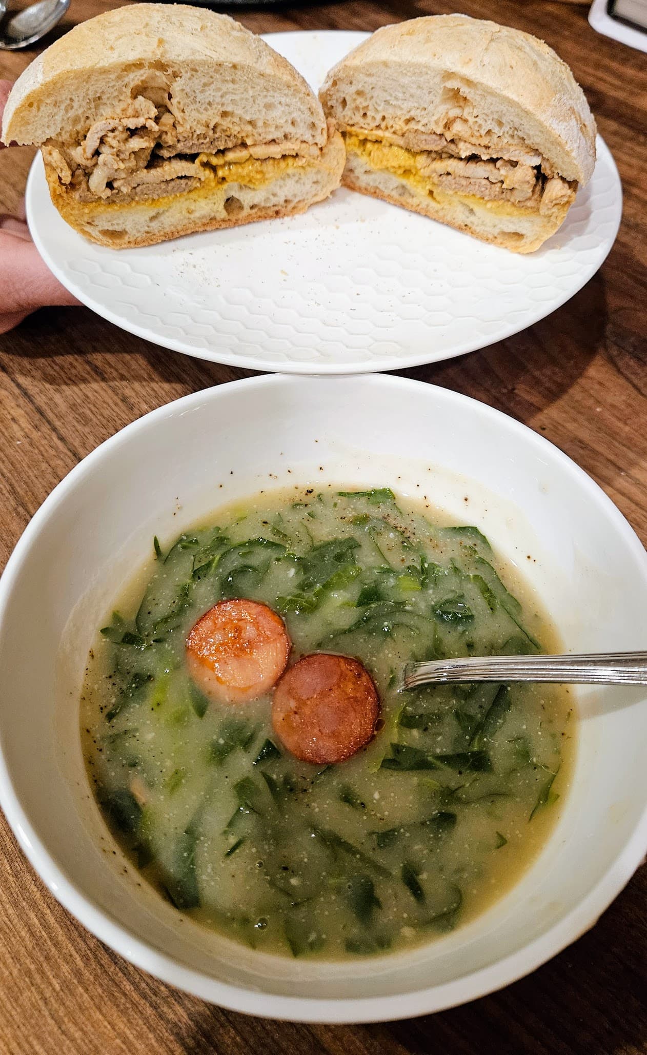 Caldo verde and bifana on Portuguese buns. All homemade and all from https://leitesculinaria.com/.