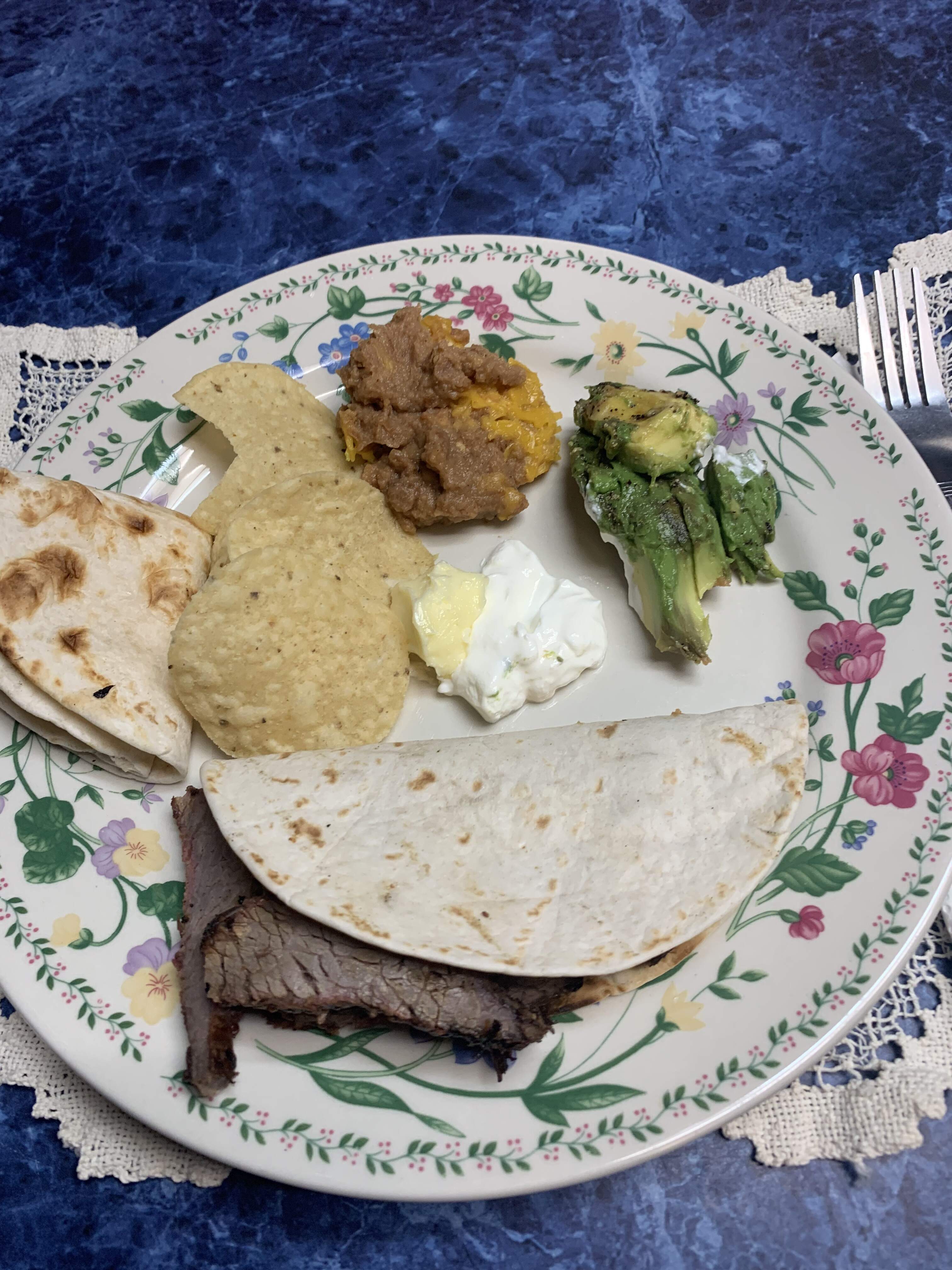 I know, I know, beef fajitas again and all the fixings but I like it.. Not shown is his cilantro, jalapeño, onion, lime juice mix.