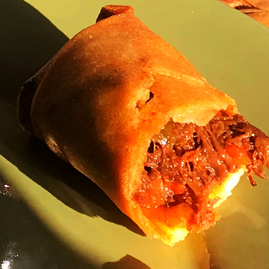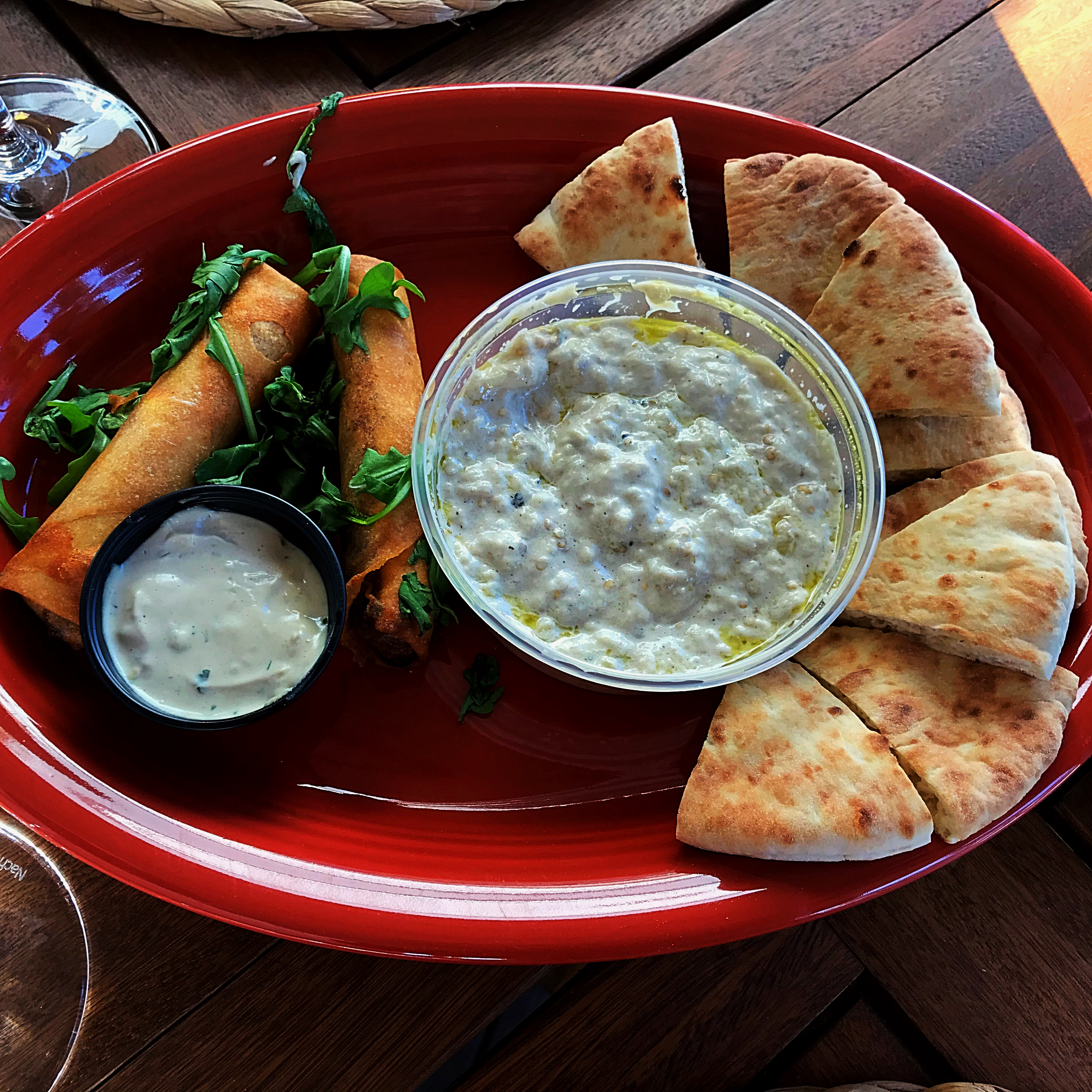We enjoyed sautéed branzino with tomatoes, spinach, capers, olives, fingerling potatoes, sherry wine and lemon; excellent house made pappardelle with a ton of braised short rib ragu, zucchini, carrots, eggplant, and oyster mushrooms; grilled octopus salad with baby arugula, fennel, caramelized onions, roasted red peppers, and mint labne; Moroccan cigars filled with braised short ribs wrapped in crispy phyllo dough and herb infused tahini; and baba ghanoush. It all went great with an awesome Le Plan Cotes Du Rhone.