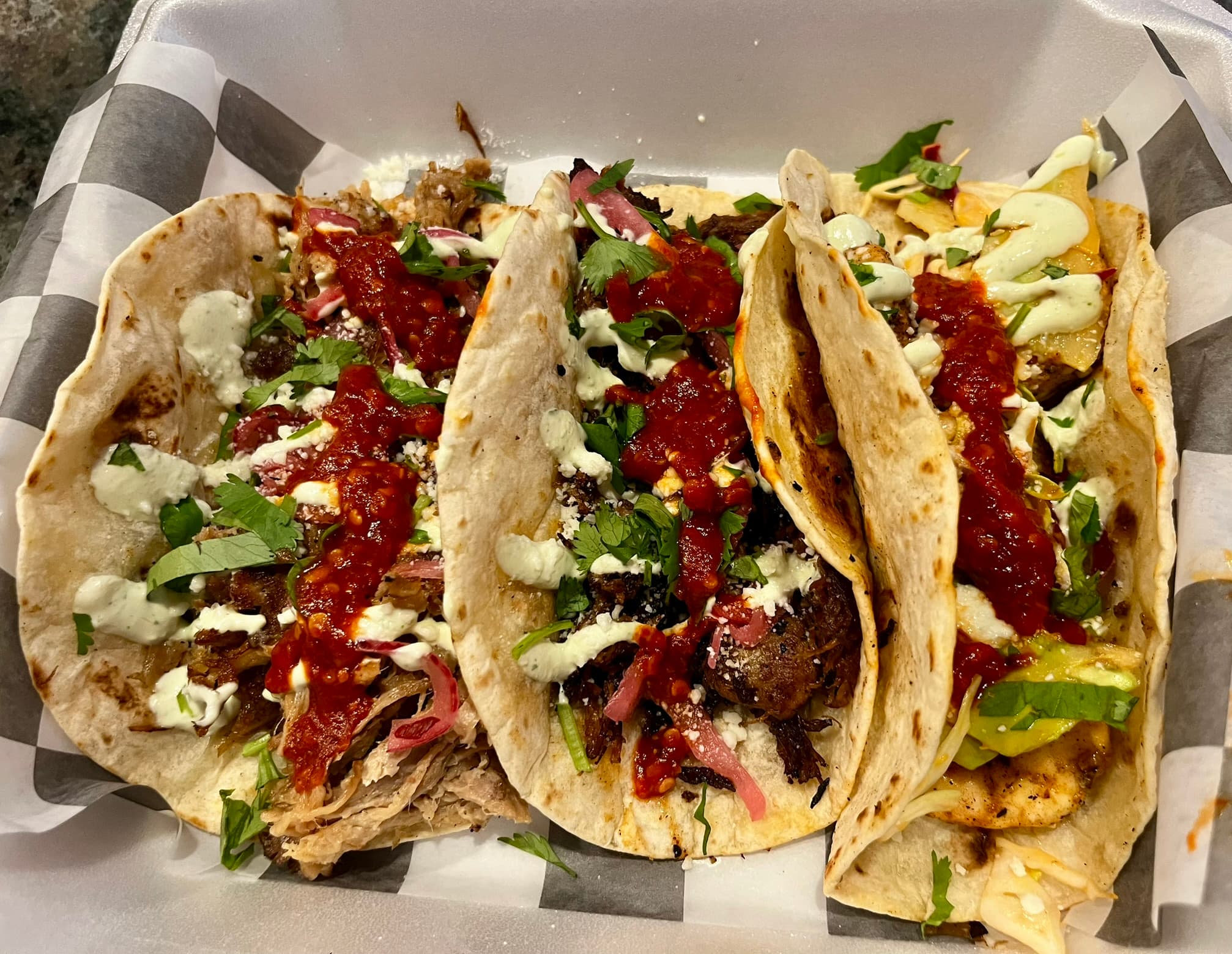 Why, it’s Taco Friday @casa lingua! We shared a roast pork, brisket, and Cajun shrimp taco flight. I was positively starvated and we snarfed this up in under 5 min, I think :face_with_hand_over_mouth:
