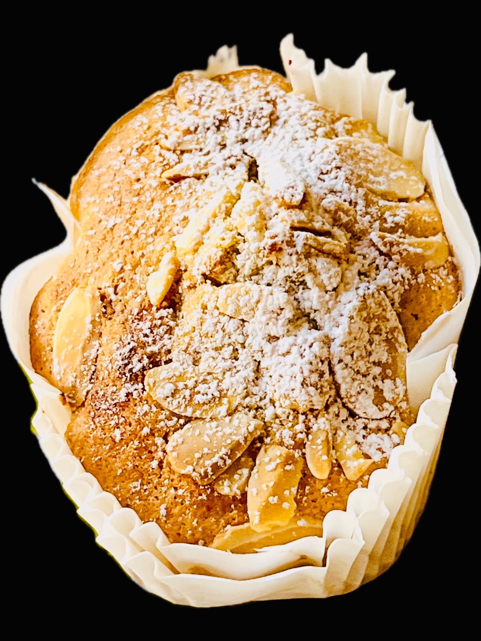 An amoeba shaped pastry, almond flour and sliced almonds; pastry filled with diced plums, plum jam and a smidgen of ginger preserves.