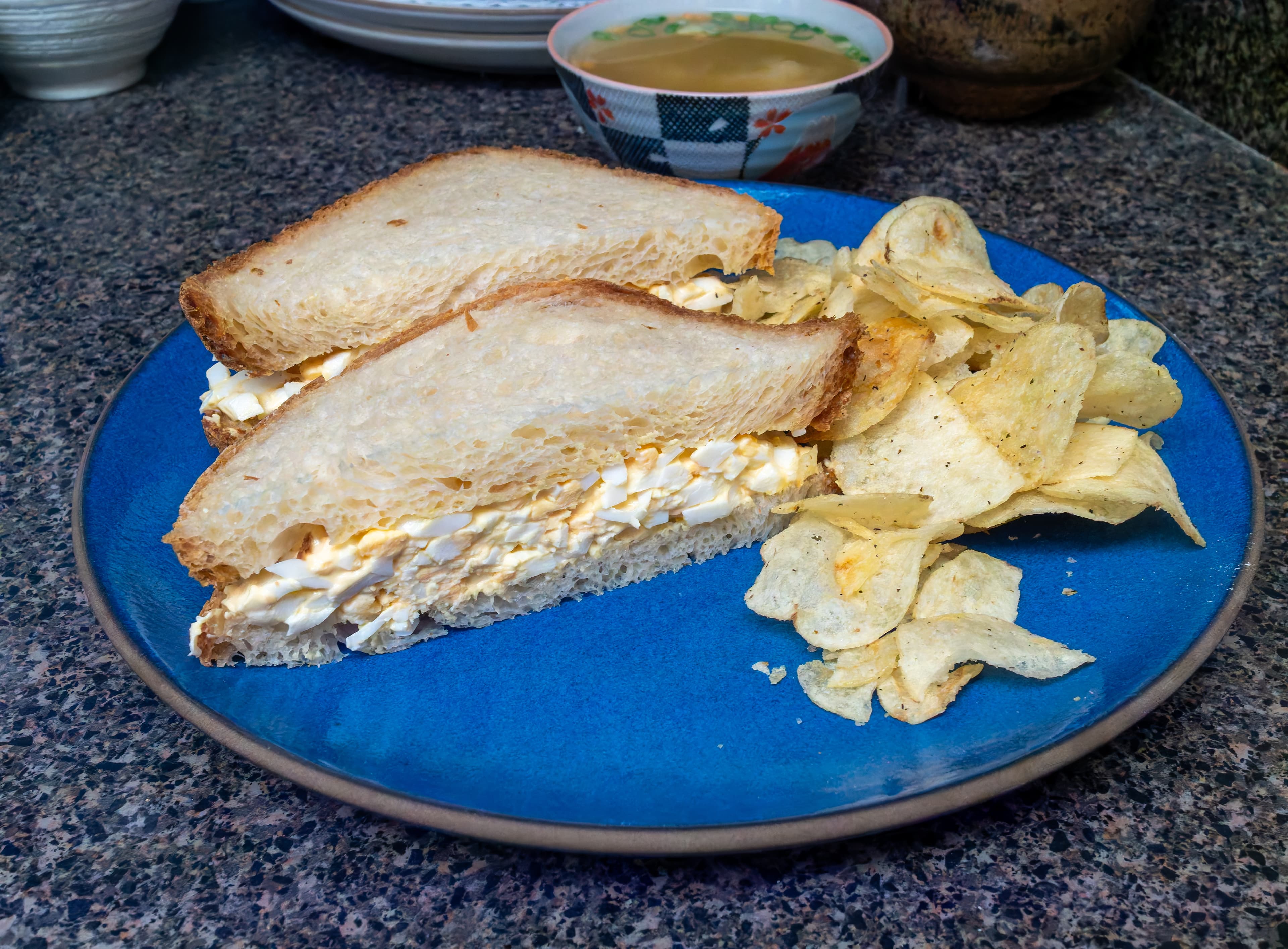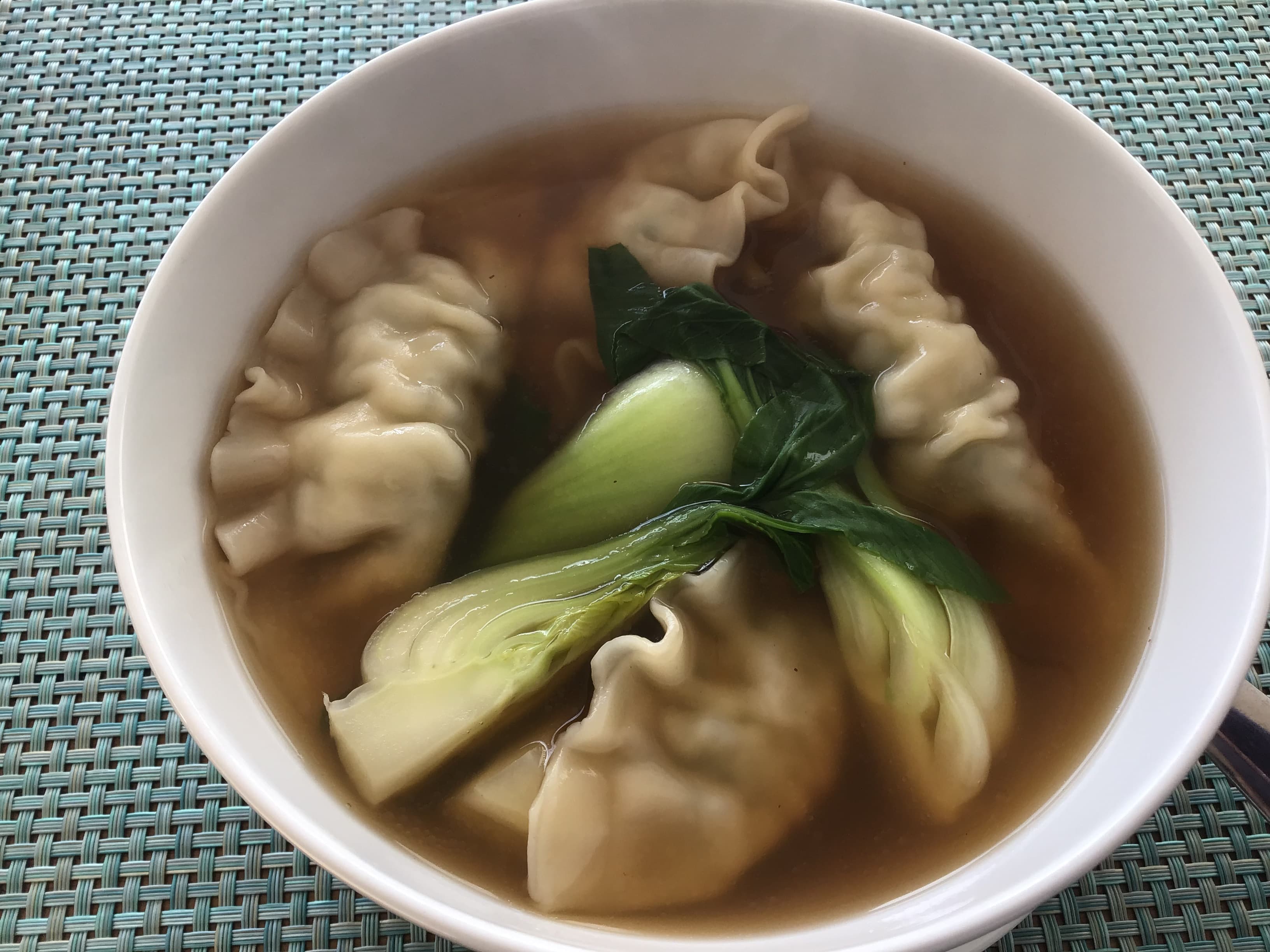 Late, tasty lunch. Frozen dumplings simmered in doctored chicken broth, FM baby bok choy added for one minute at the end. I went a bit heavy on the chili garlic sauce, my lips are tingling.