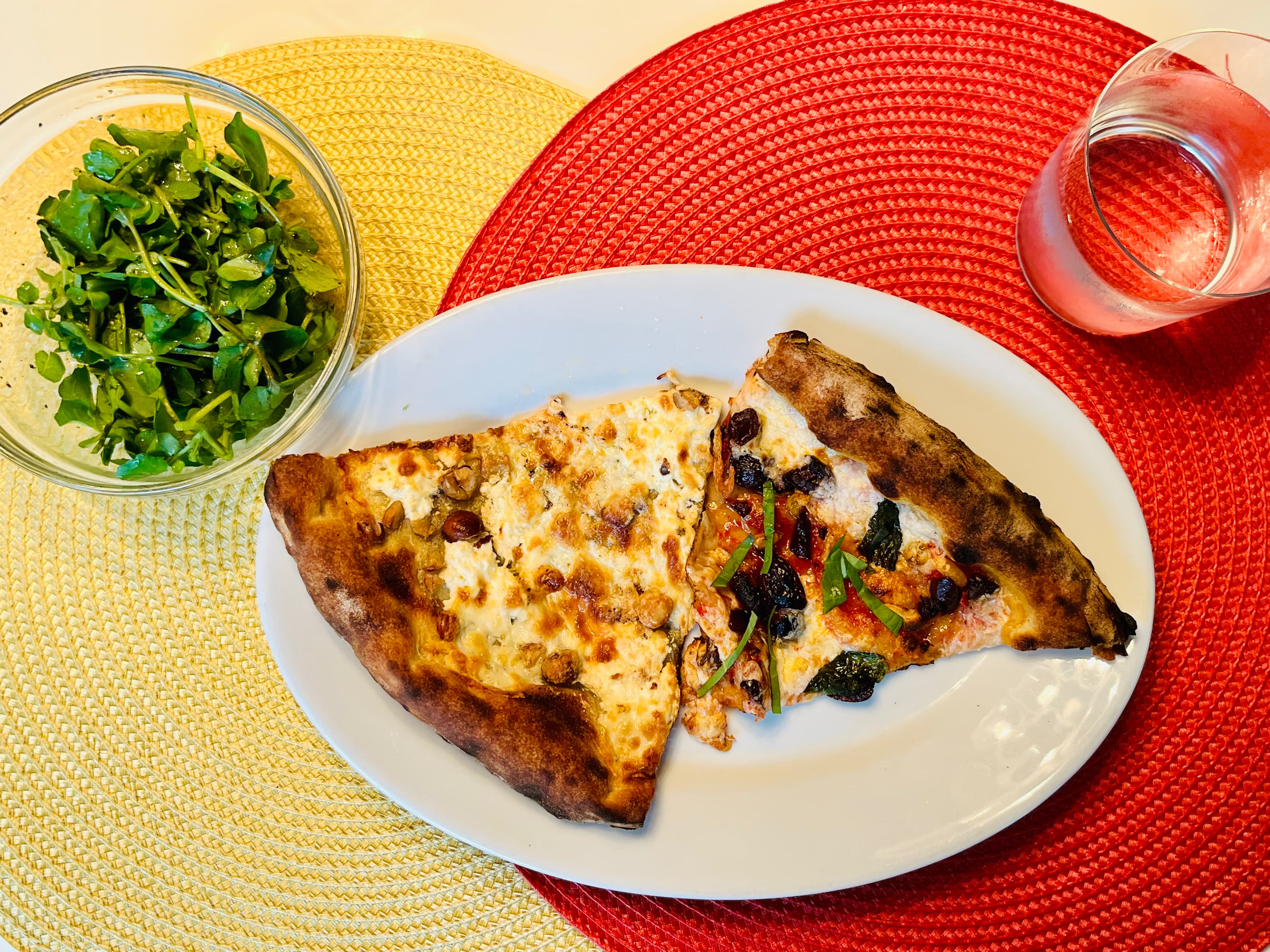A Project Hazelnut slice, fresh mozzarella, Rutgers University hazelnuts, ricotta.