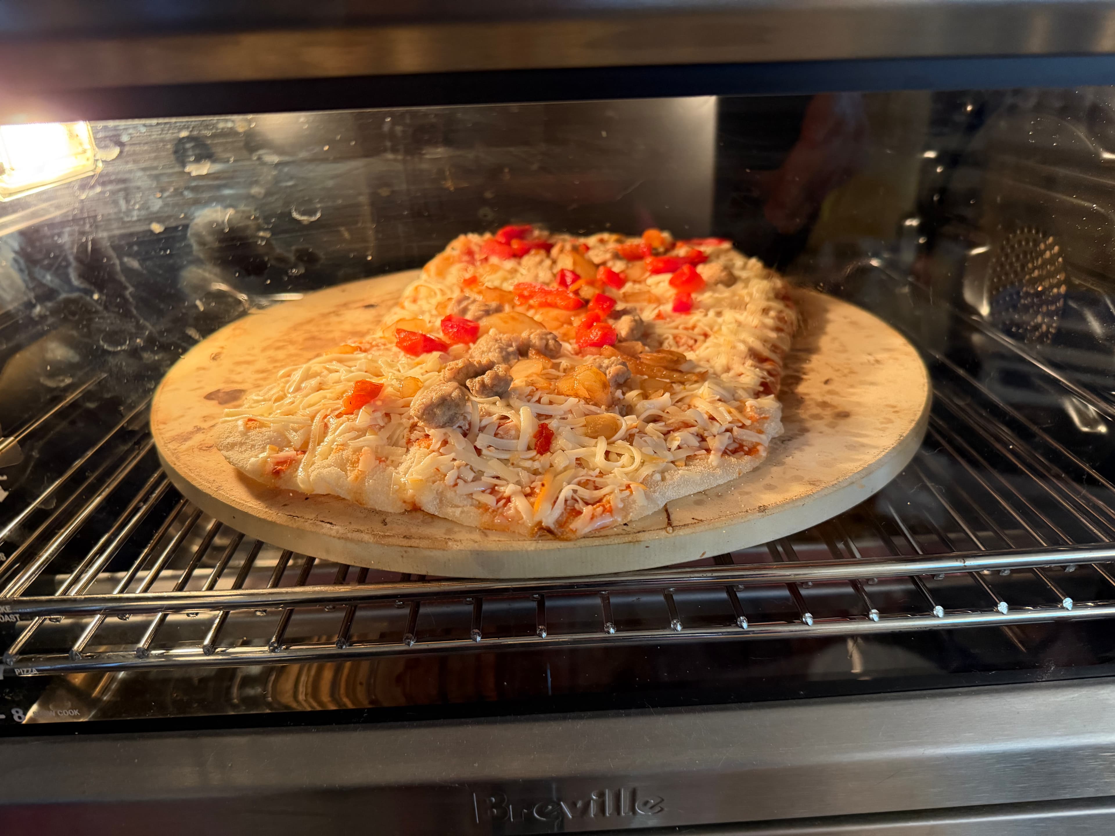 I preheated my Breville convection counter oven and its pizza stone to 25 degrees less than the box instructions- it was still done 2mor 3 minutes before the minimum time