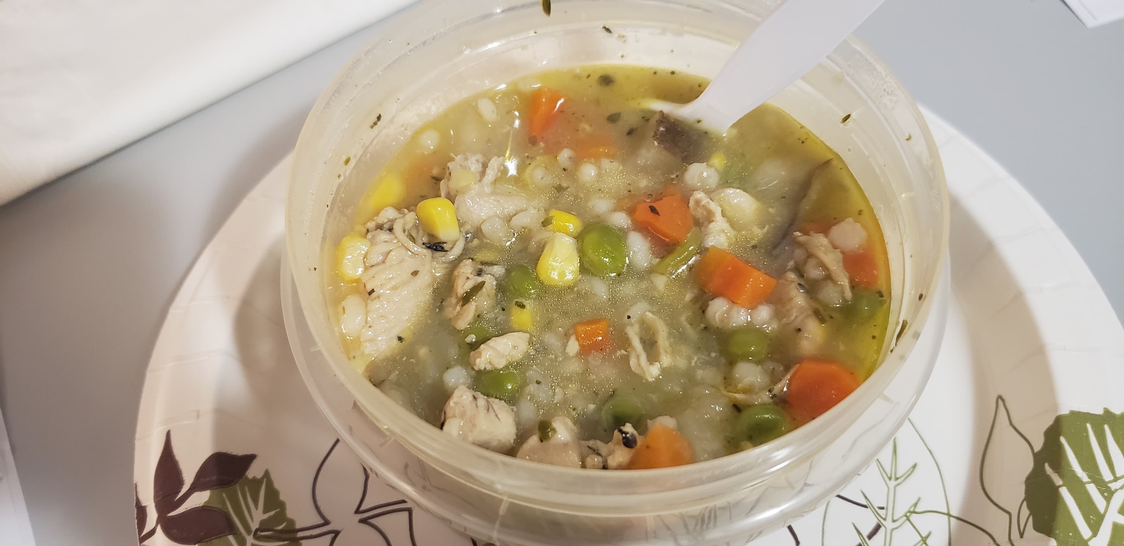 Part of my “eat from the pantry and freezer” goals was to pull this from my upstairs this morning for a work lunch. Since the label had fallen off, I wasn’t quite sure what it was, but I could see carrots, peas, potatoes, and corn. OK, a stew or soup.