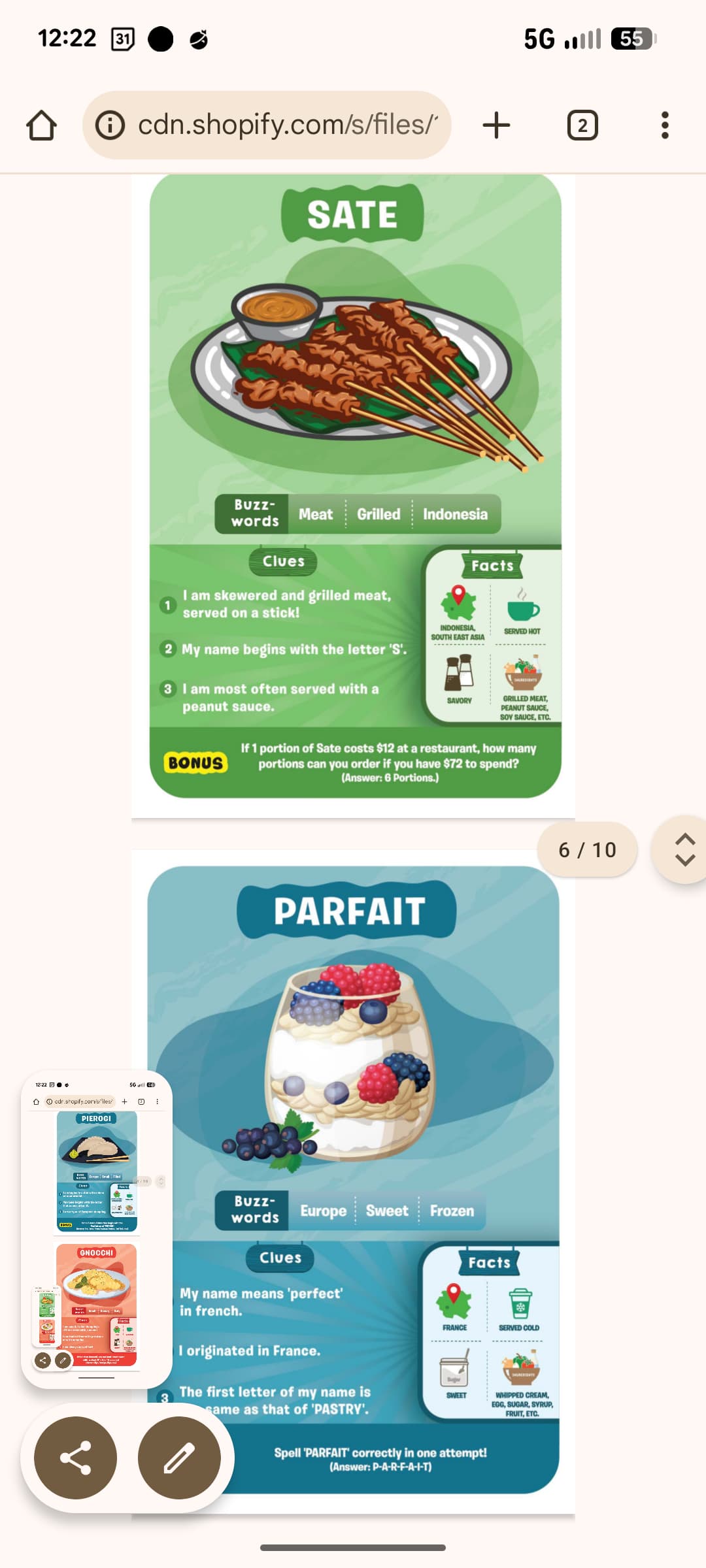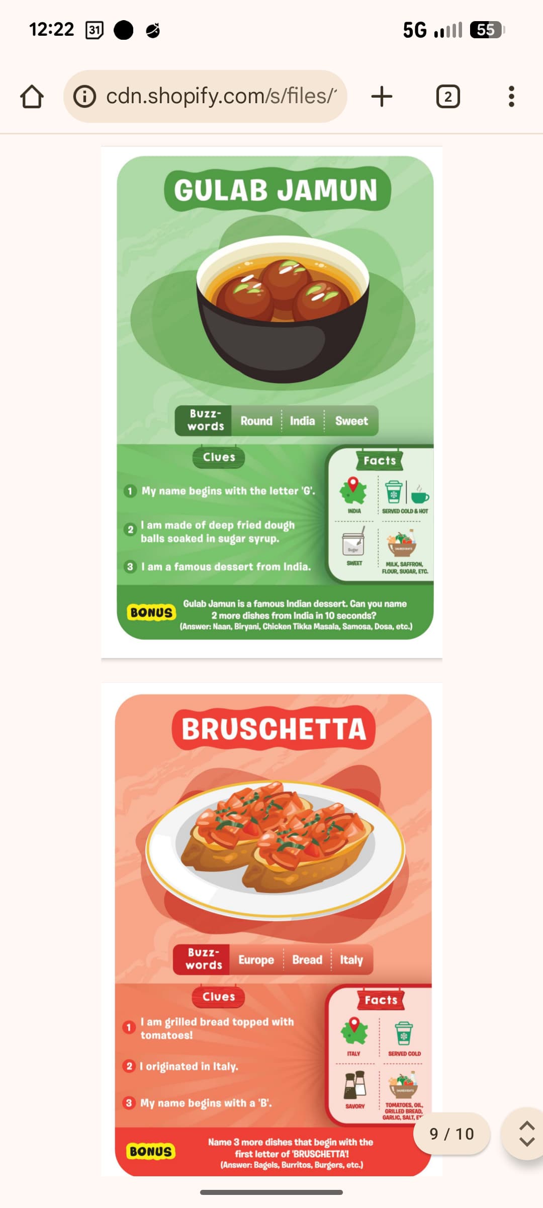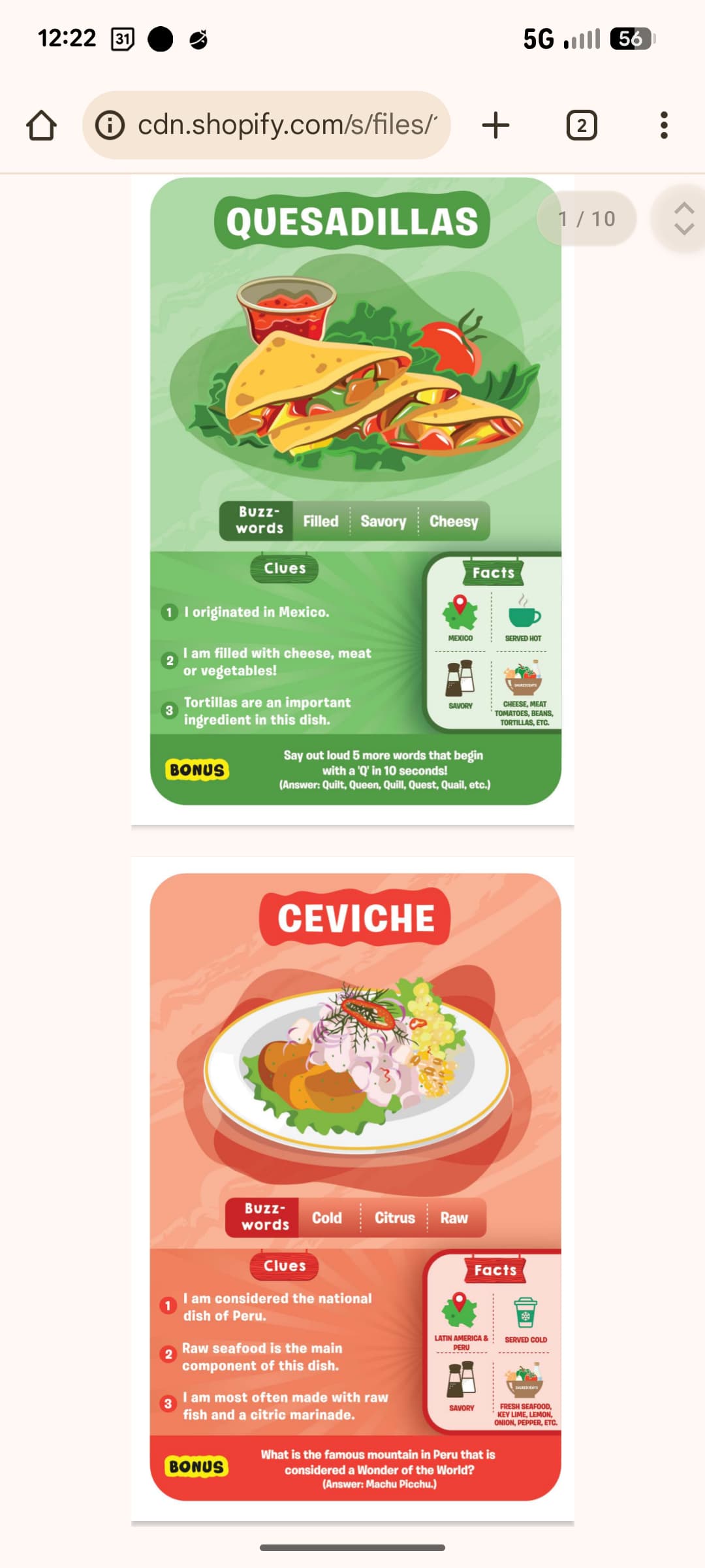 Do you think you could guess these “Foods Around the World” without looking at thus side of the card? You can ask 10 questions and there are clues.